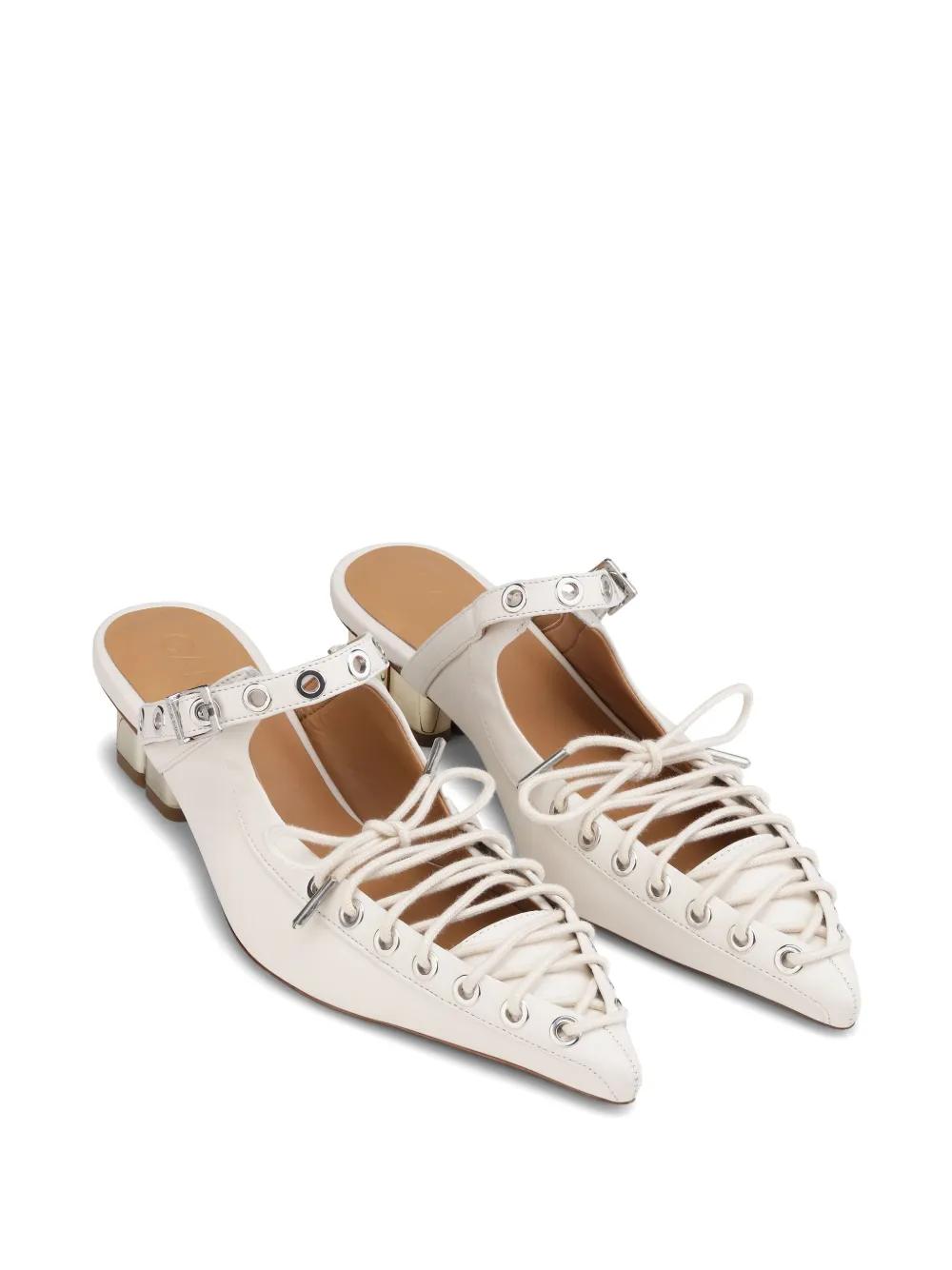 white front lace-up fastening buckle fastening low block heel branded leather insole