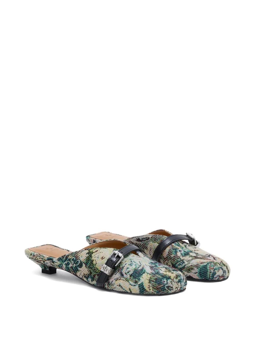 GANNI tapestry kitten heeled mules - Green