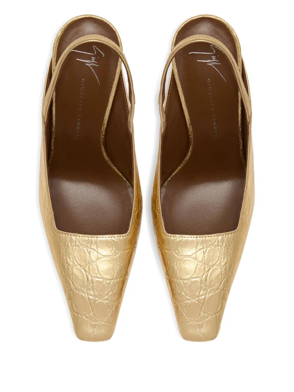 Giuseppe Zanotti 90mm Brendha crocodile-print square-toe - Gold