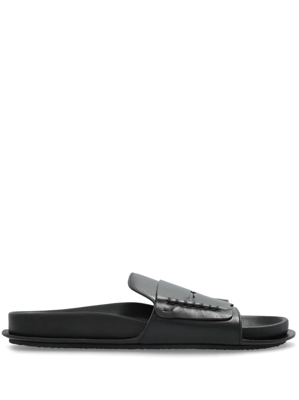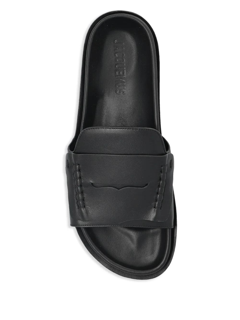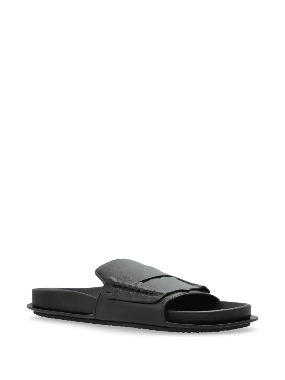 black embossed detailing flat sole padded strap open toe design slip-on style
