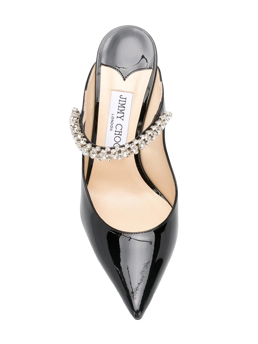 black patent leather 100mm high stiletto heel crystal embellishment pointed toe low vamp branded insole Wardrobe Icon