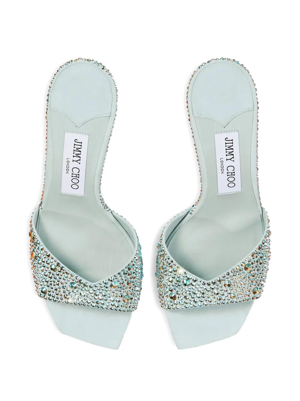 green slip-on style square open toe mid heel synthetic crystal embellishment