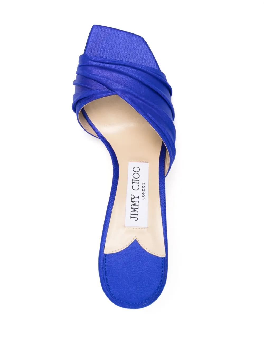 ultraviolet calf leather satin finish draped design open toe branded leather insole slip-on style 75mm high heel