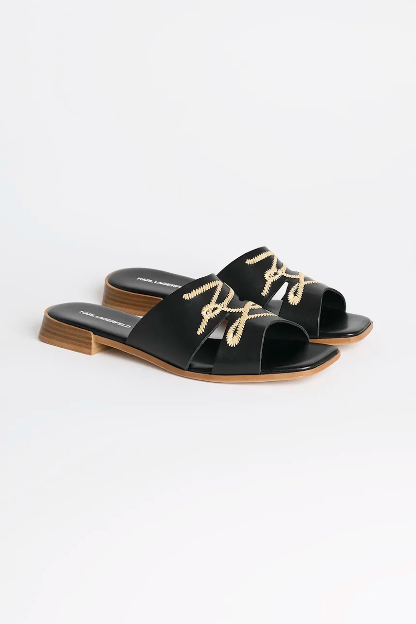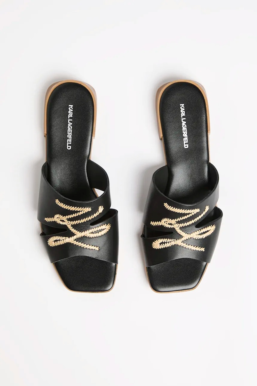 Karl Lagerfeld klapki skórzane PETALO damskie kolor czarny KL80772