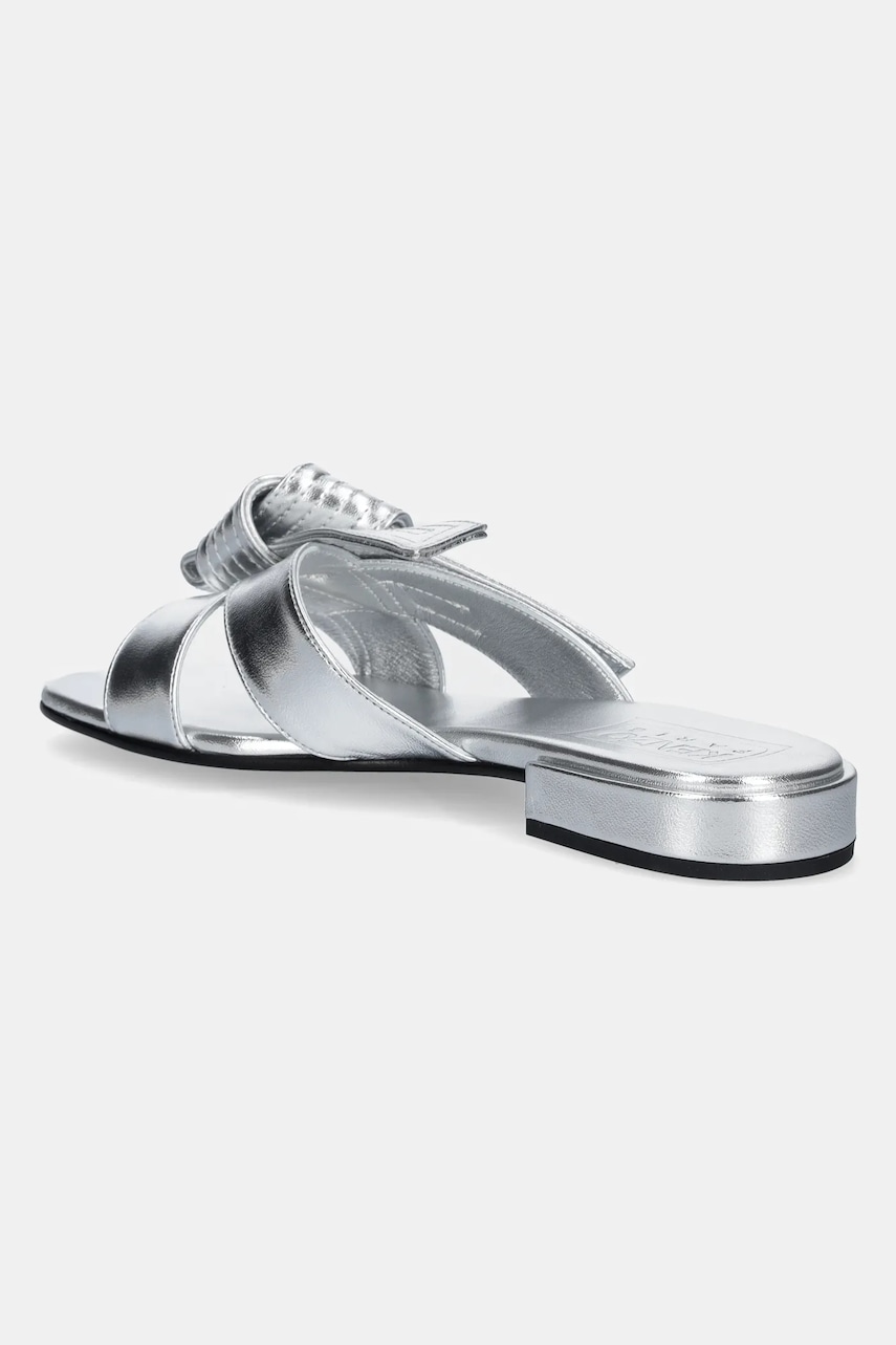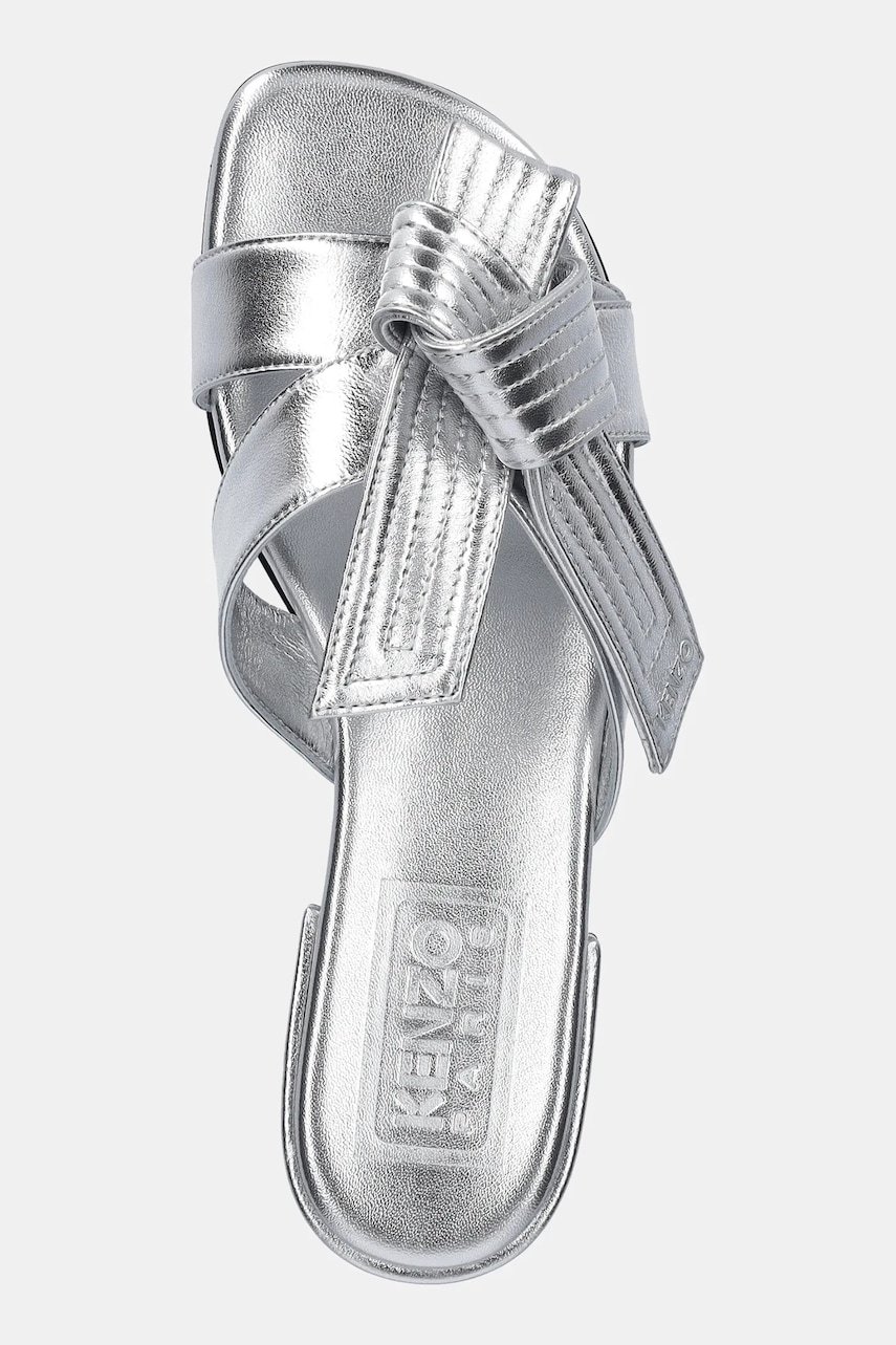Kenzo klapki skórzane Mule damskie kolor srebrny FE62MU125L77.AG