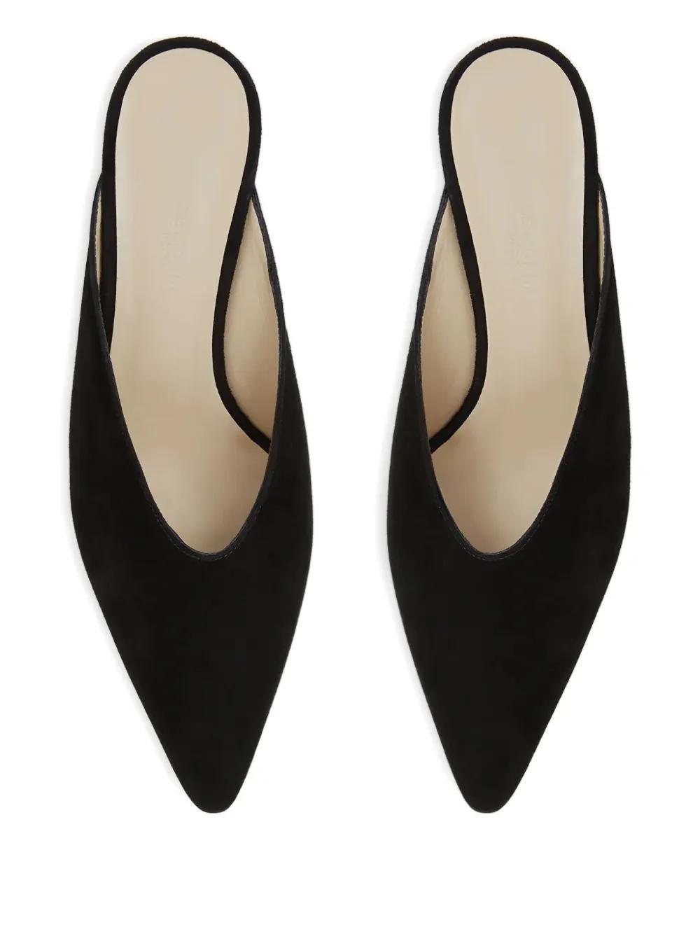 black suede 4 cm wedge-heel pointed toe logo-embossed insole