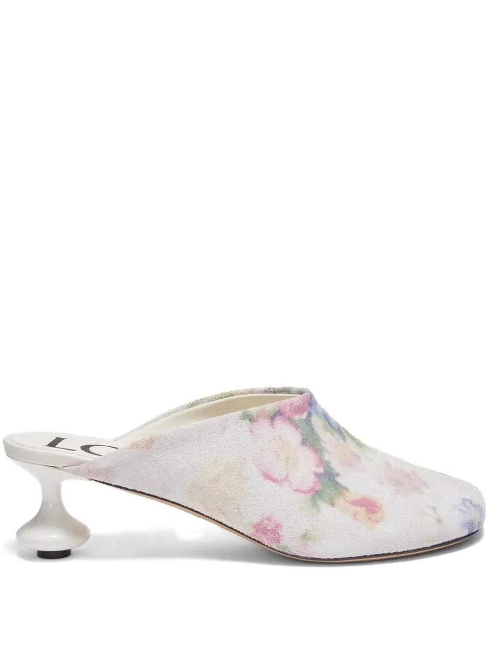 off-white floral print calf leather sculpted heel open toe slip-on style
