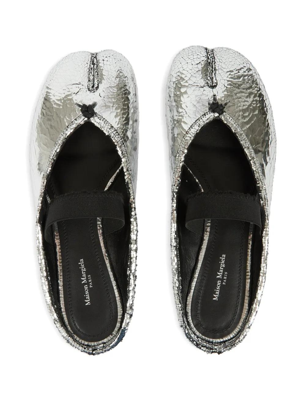 silver textured finish signature Tabi toe elasticated strap flat sole