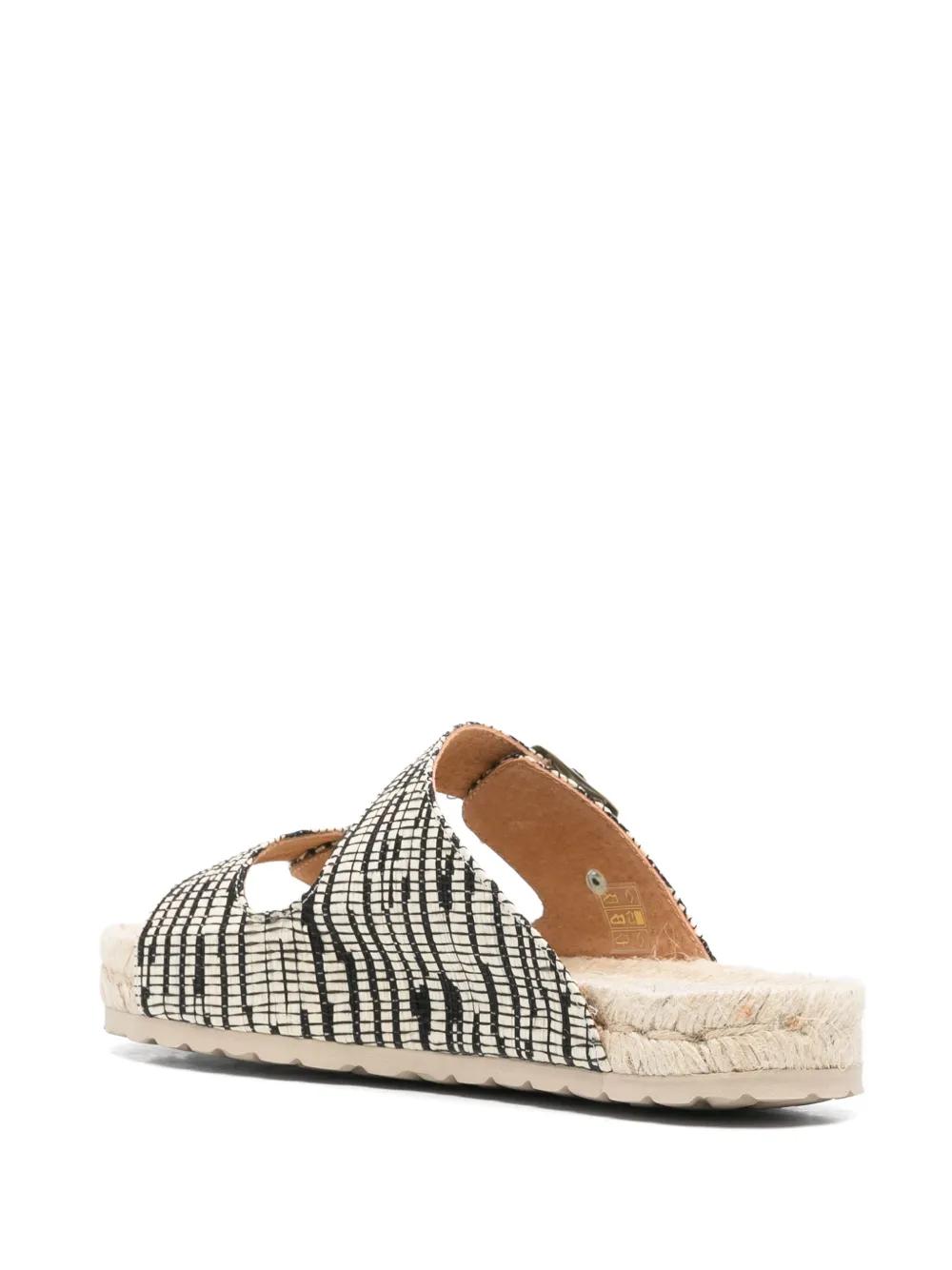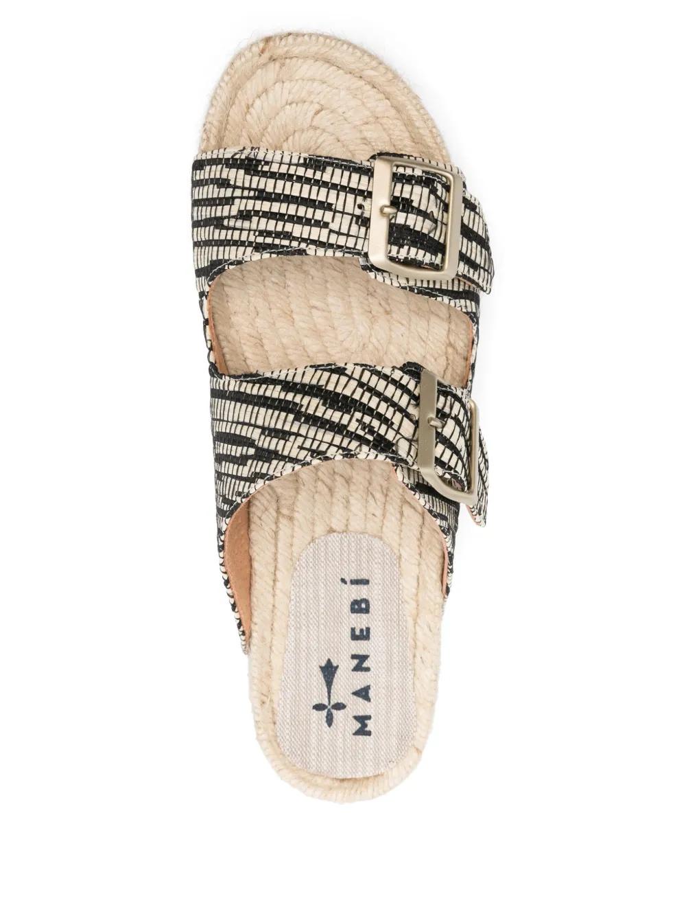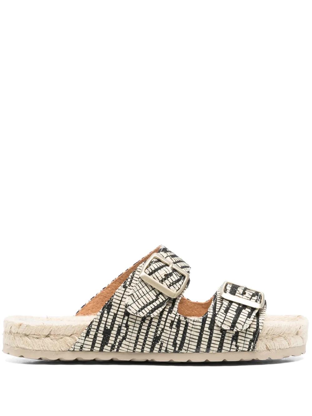 light beige double buckle fastening round open toe branded insole rubber outsole