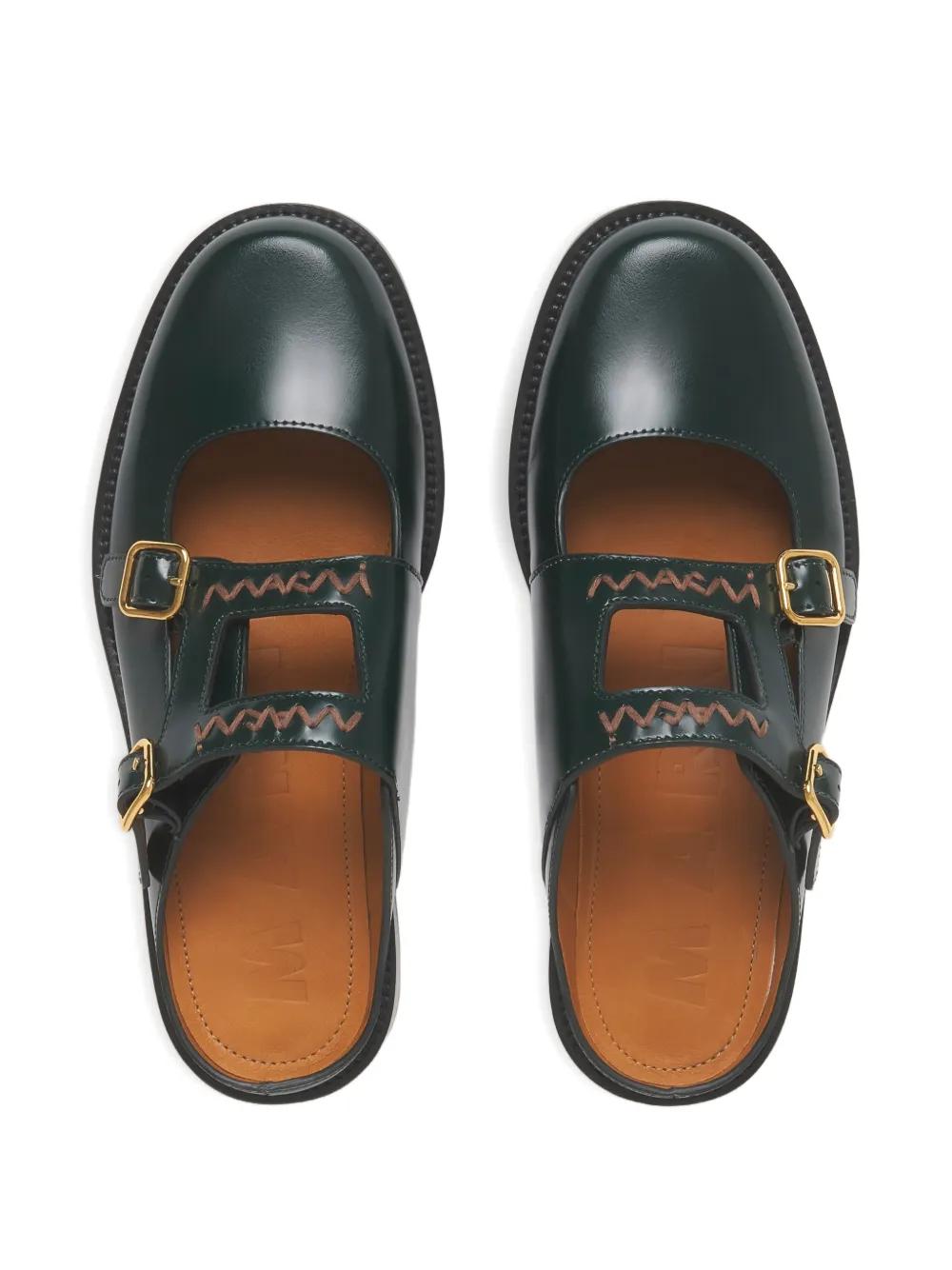 black polished finish buckle fastening iconic Tabi toe contrasting colour stitches at heel