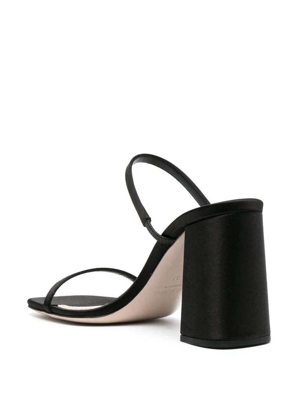 black calf leather satin finish slip-on style open toe high block heel branded leather insole
