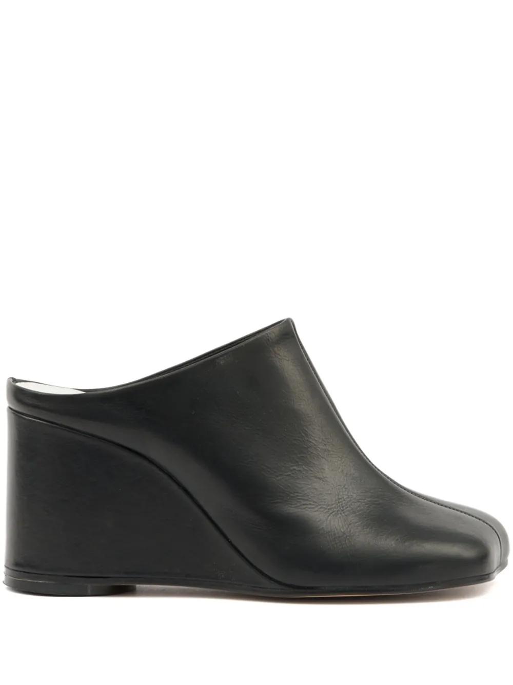 black asymmetric toe leather sole wedge heel