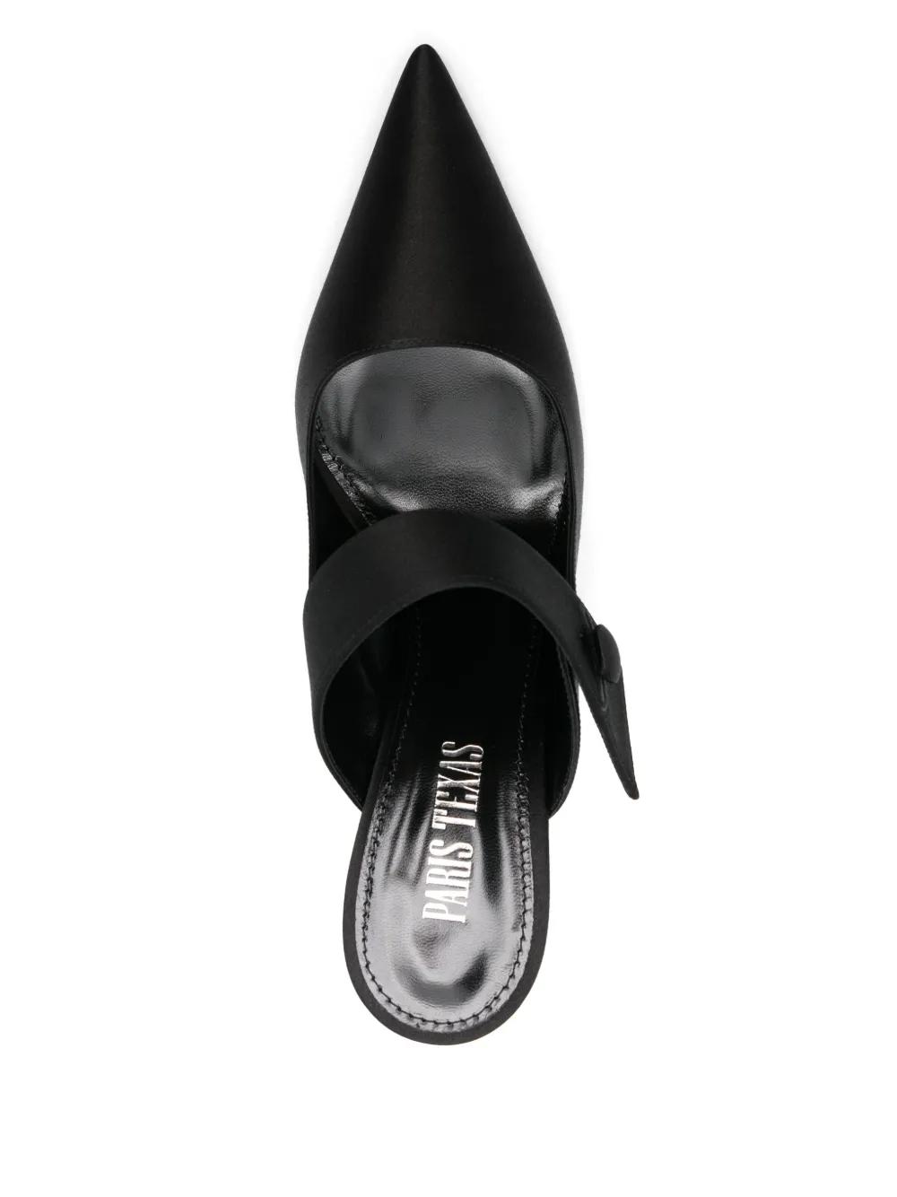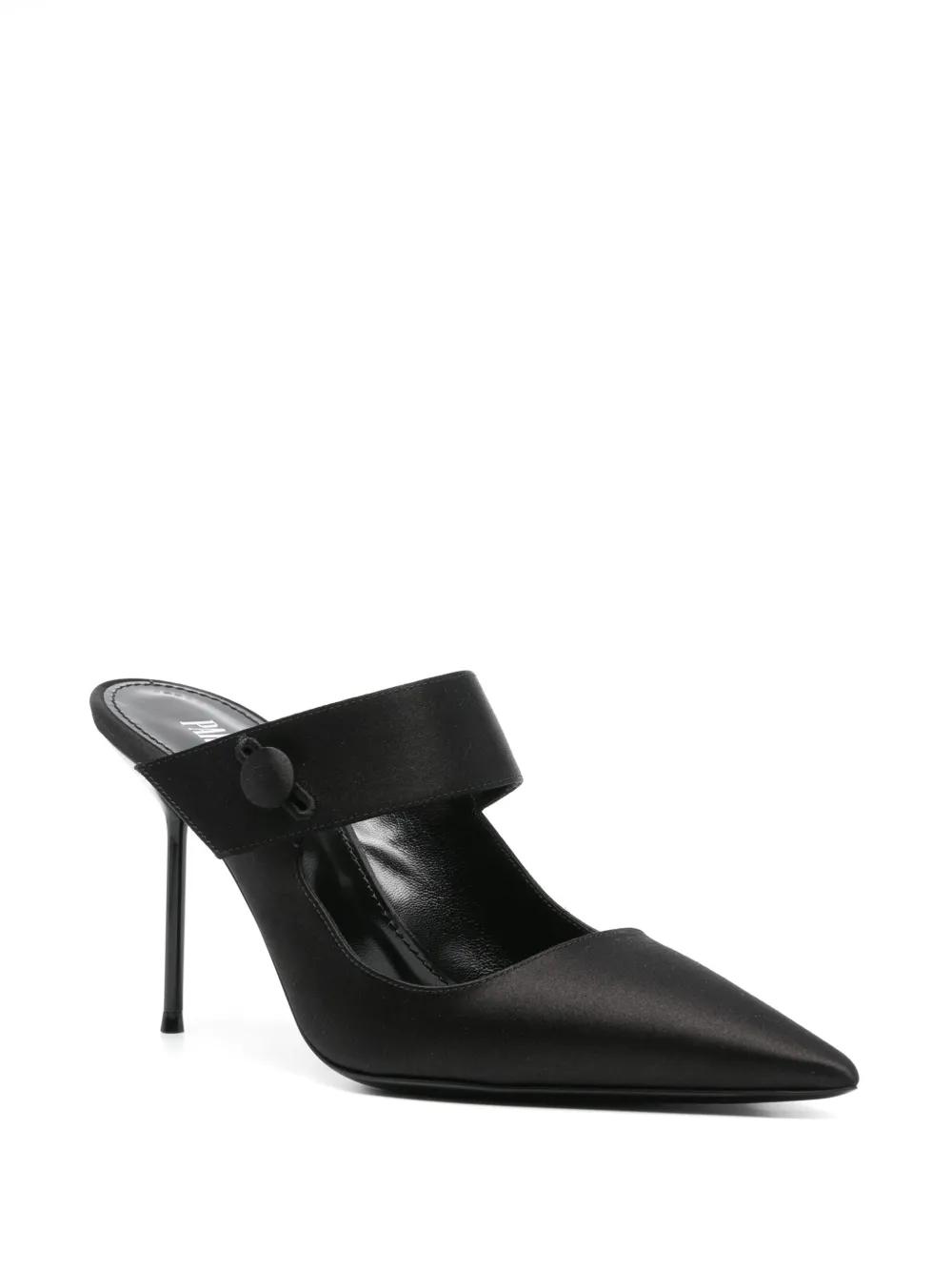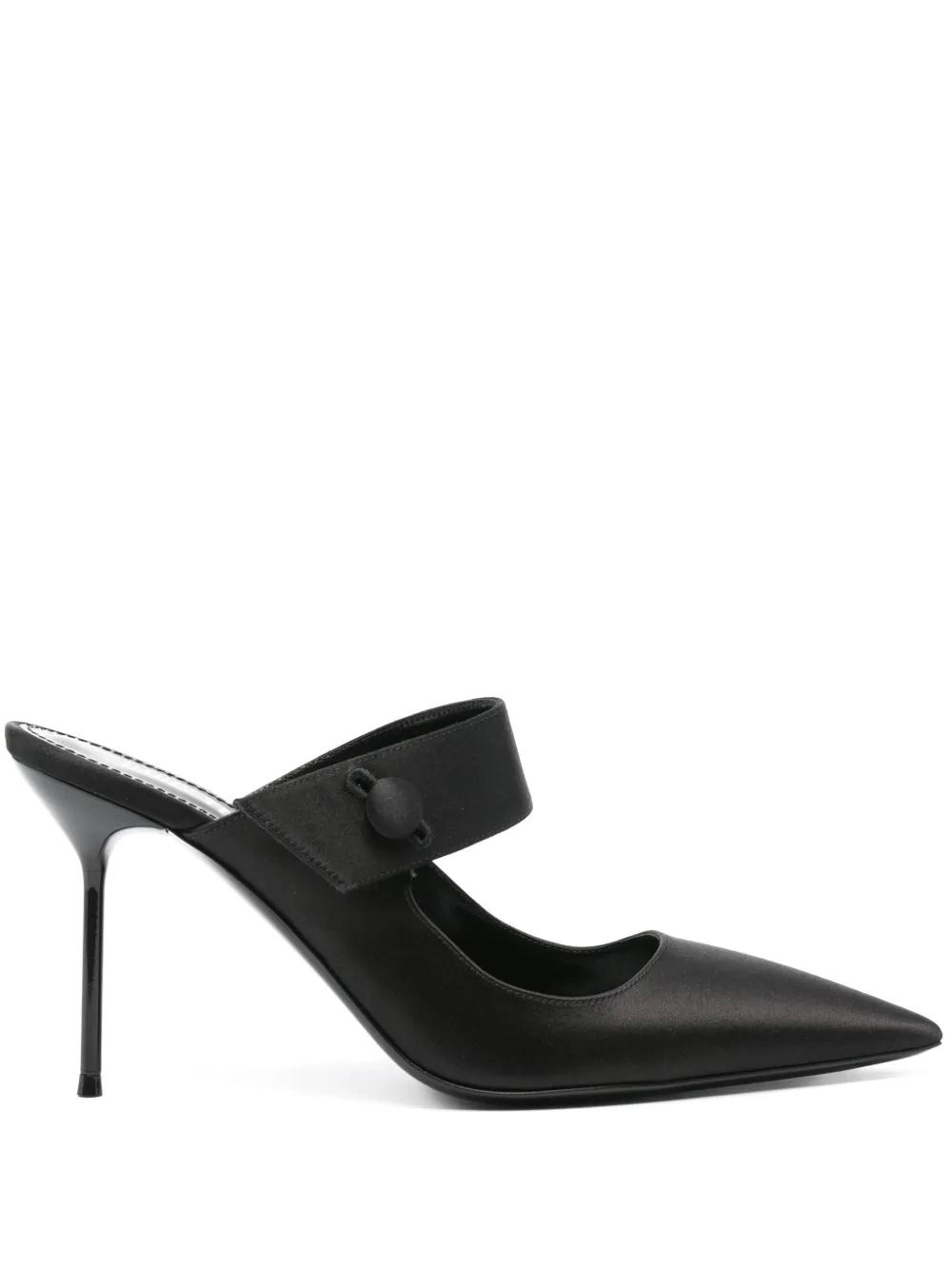 black elasticated strap branded footbed pointed toe high stiletto heel