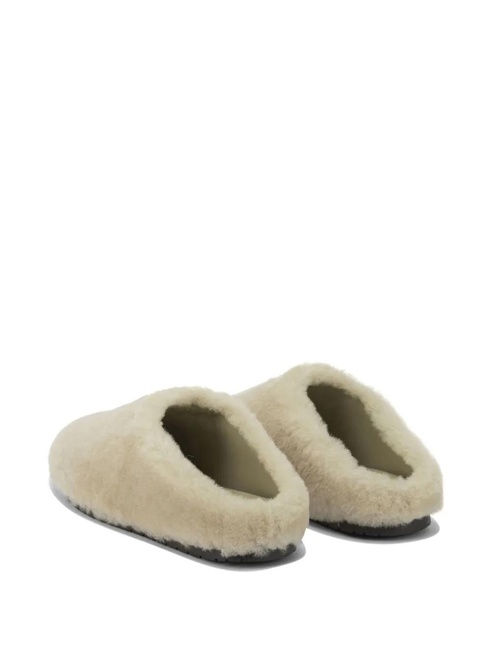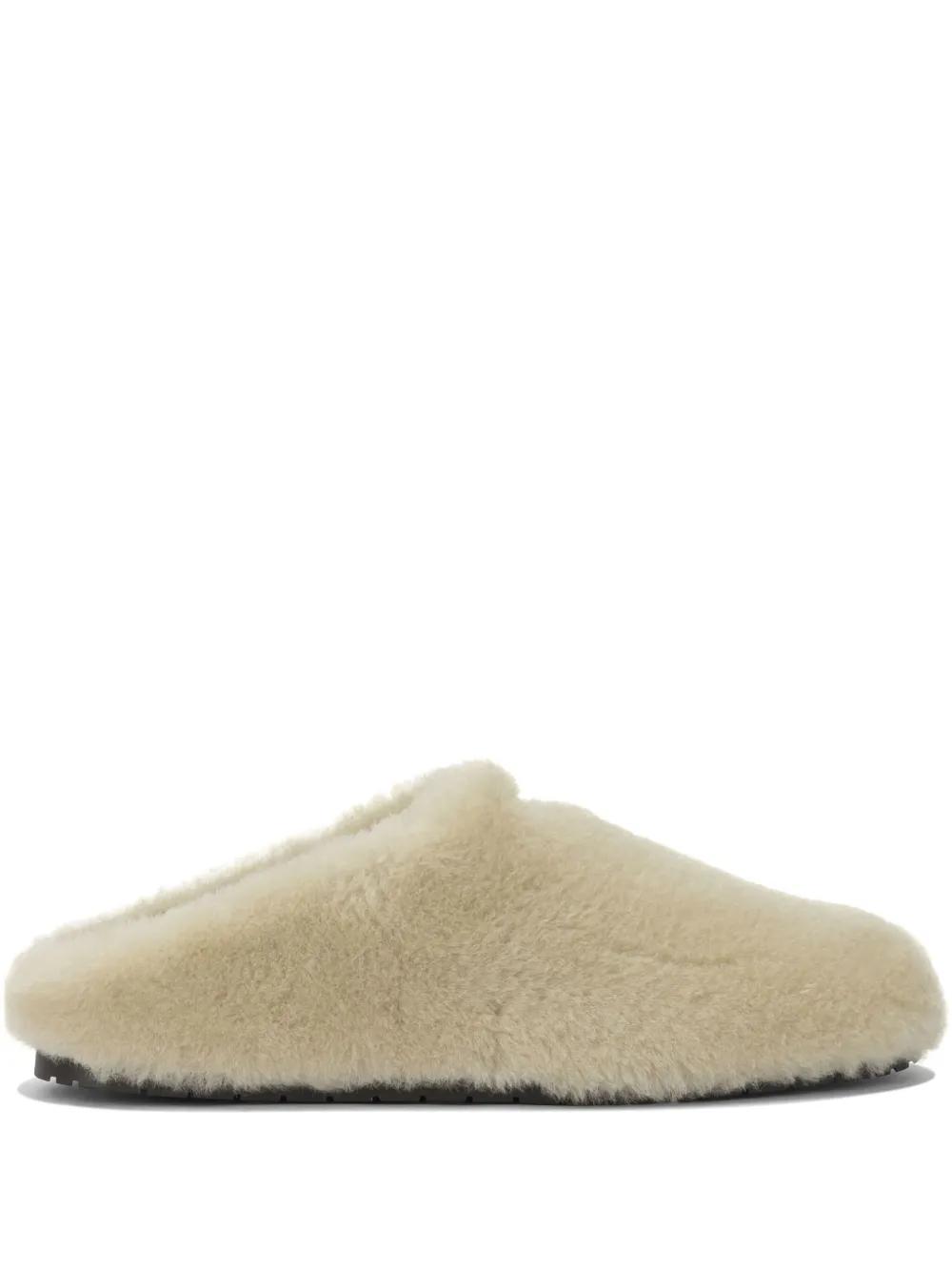 beige fur construction rubber sole flat sole slip-on style logo detail