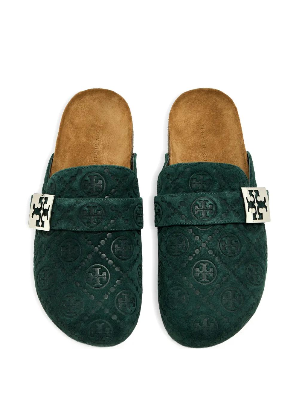 Tory Burch logo-buckle flat mules - Green
