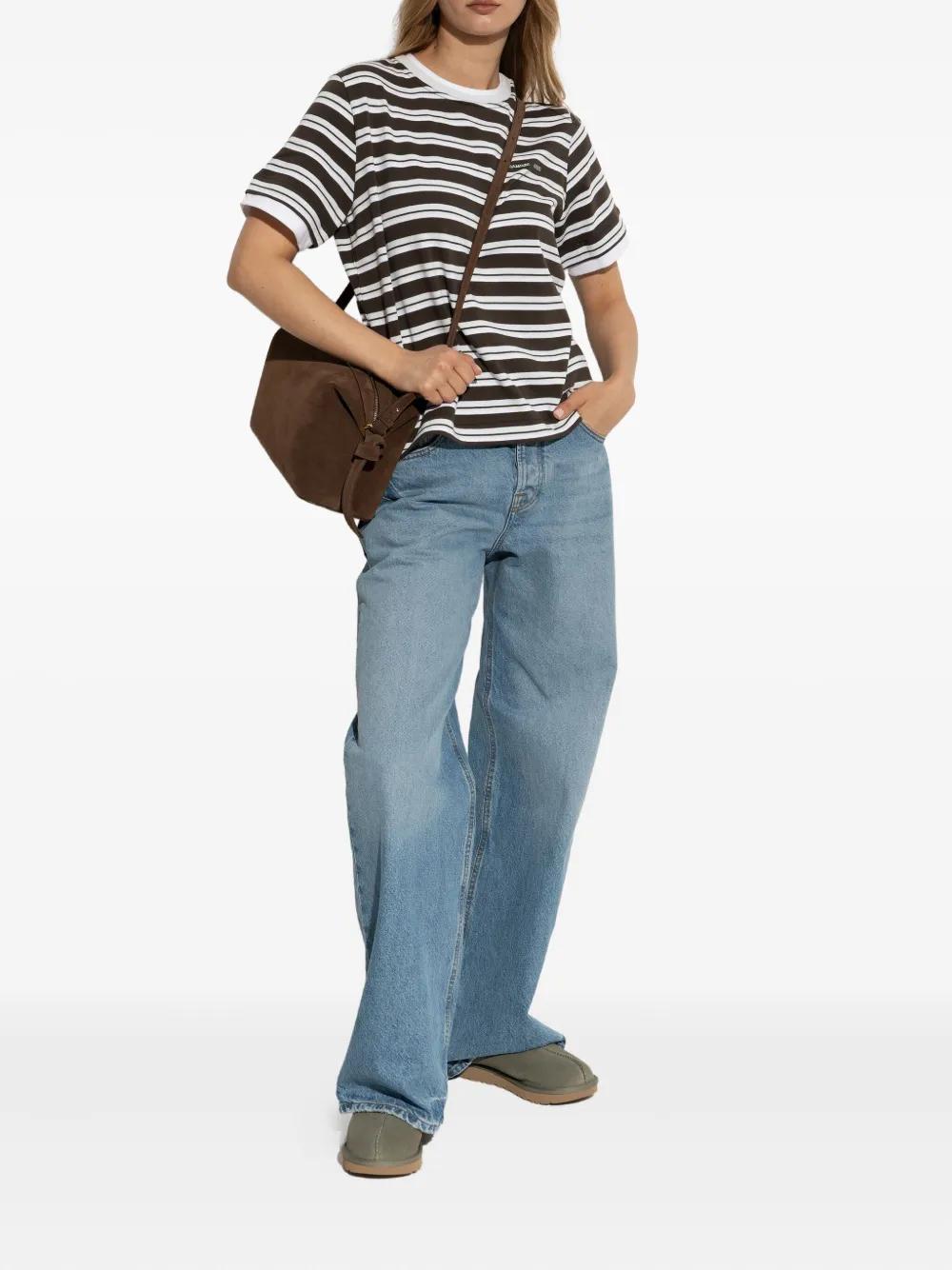 camel brown calf suede signature Double T motif silver-tone logo plaque crossover strap detail slip-on style round toe branded insole flat rubber sole