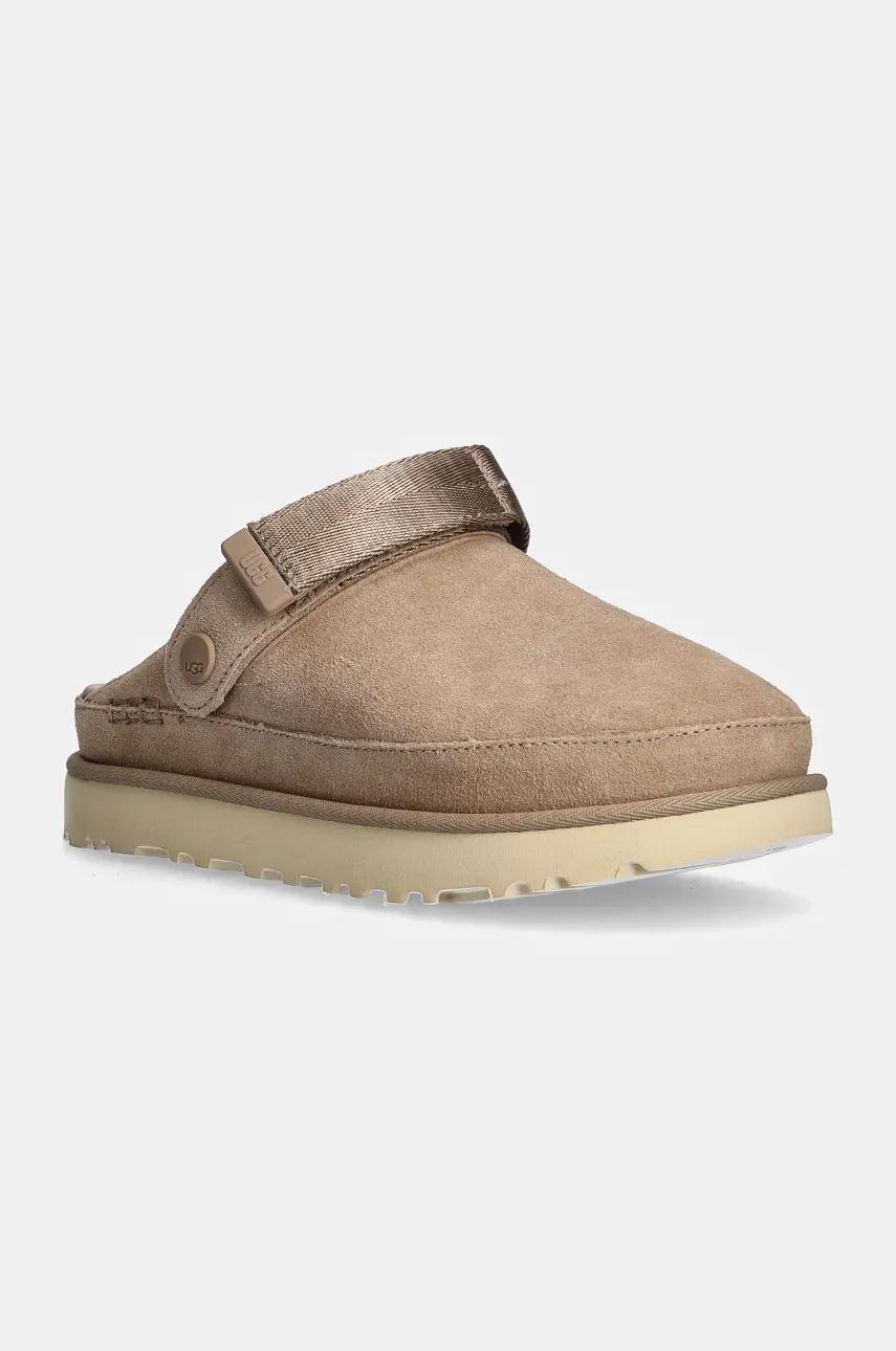 UGG klapki zamszowe Goldenstar Clog damskie kolor beżowy na platformie 1138252-SAN
