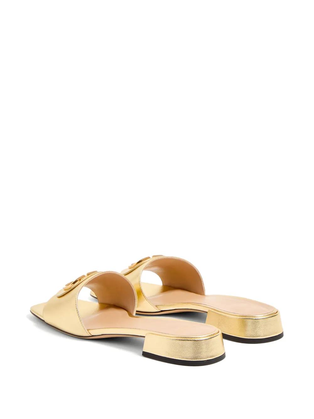 gold-tone square open toe backless low stacked heel maxi VLogo Signature