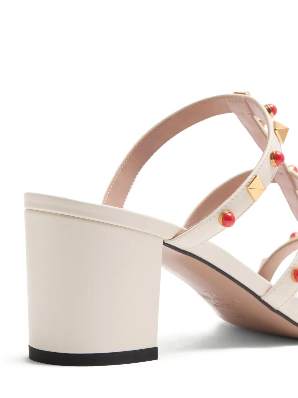 beige calf leather gold-tone Rockstud detailing caged design 60mm block heel branded footbed leather sole