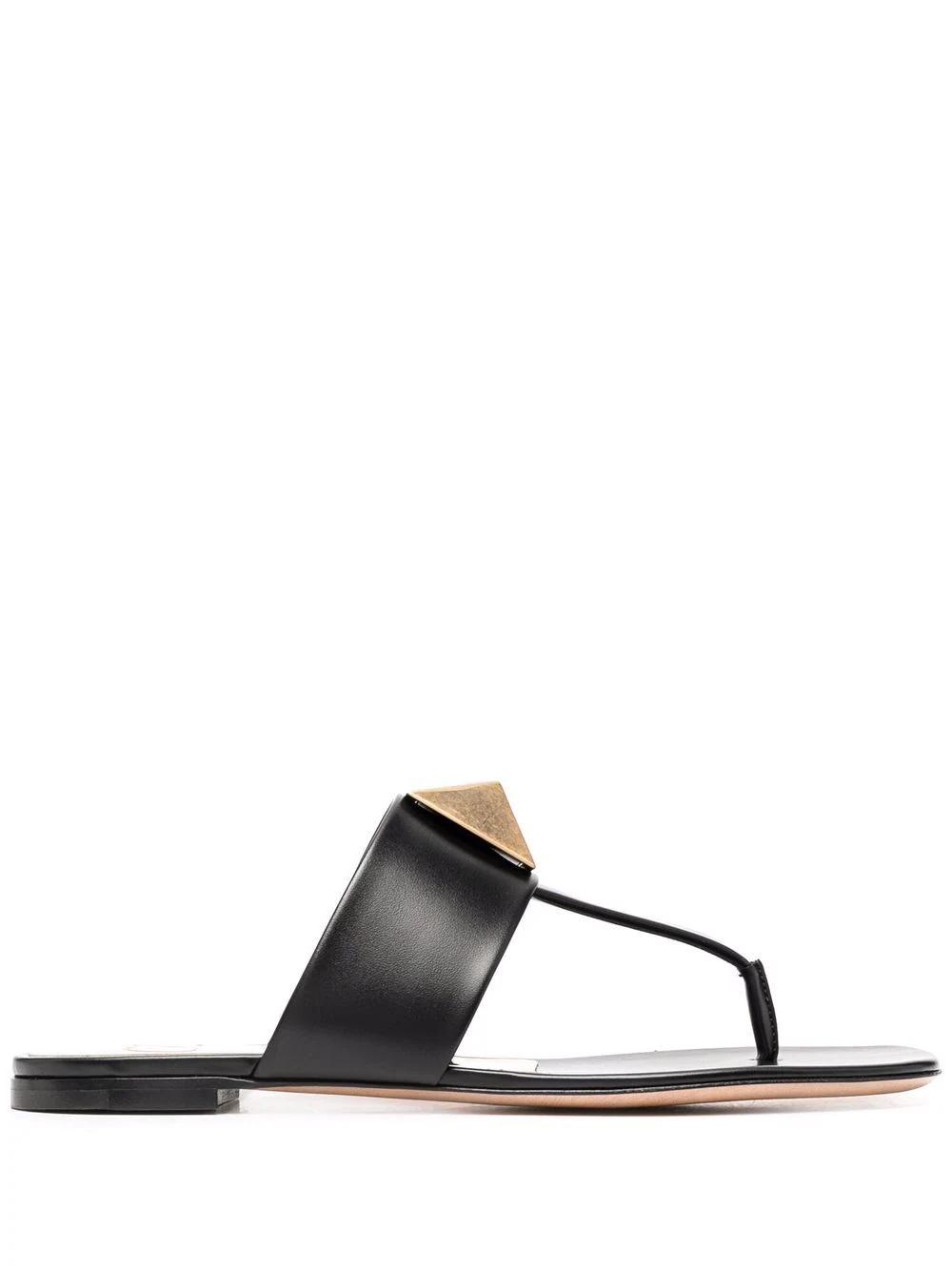 black calf leather signature Roman Stud detailing thong strap open toe slip-on style flat sole