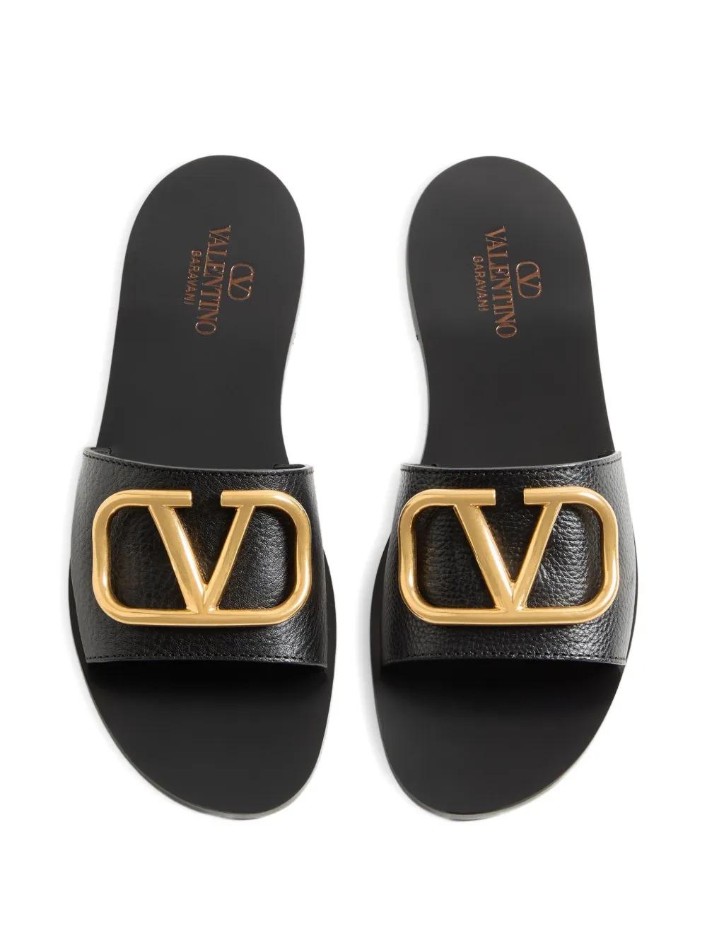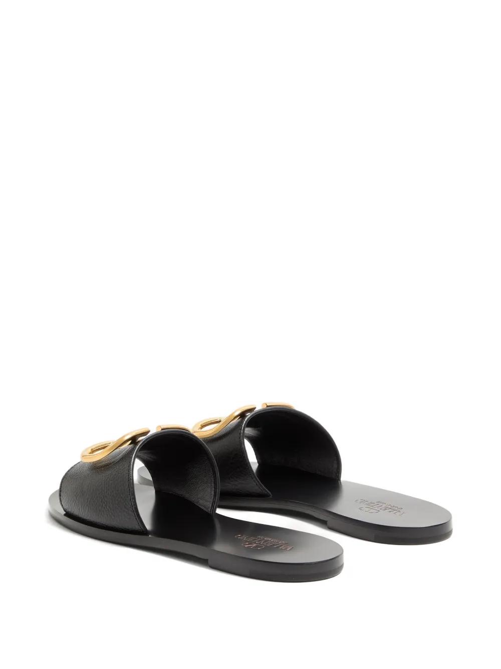 black leather VLOGO plaque open toe slip-on style open back flat leather sole