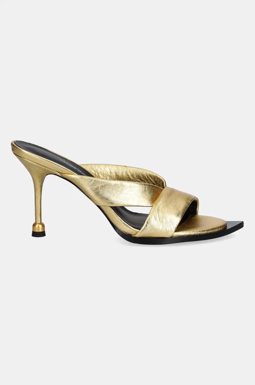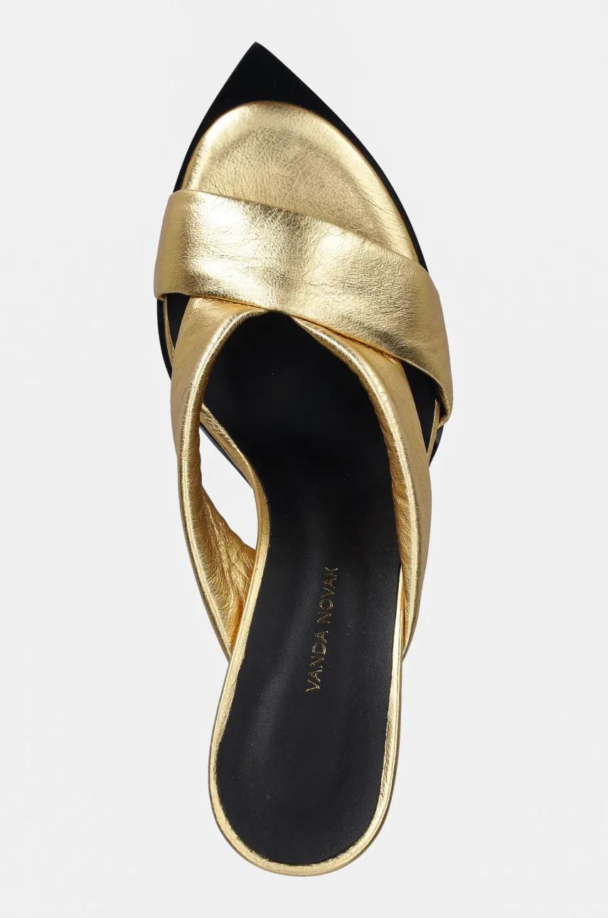 Vanda Novak klapki skórzane Mila damskie kolor złoty na szpilce