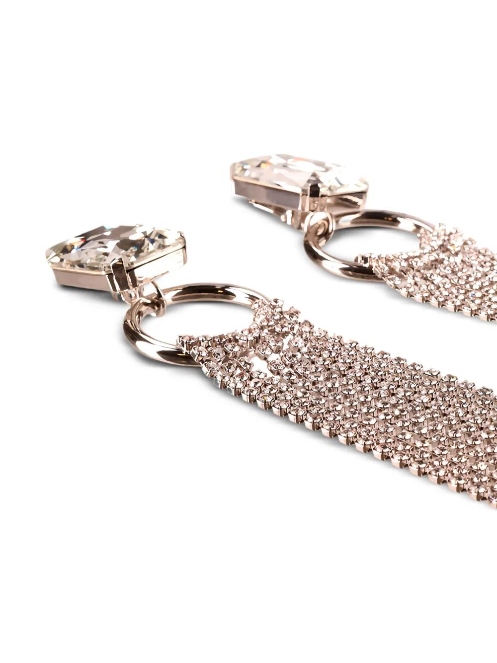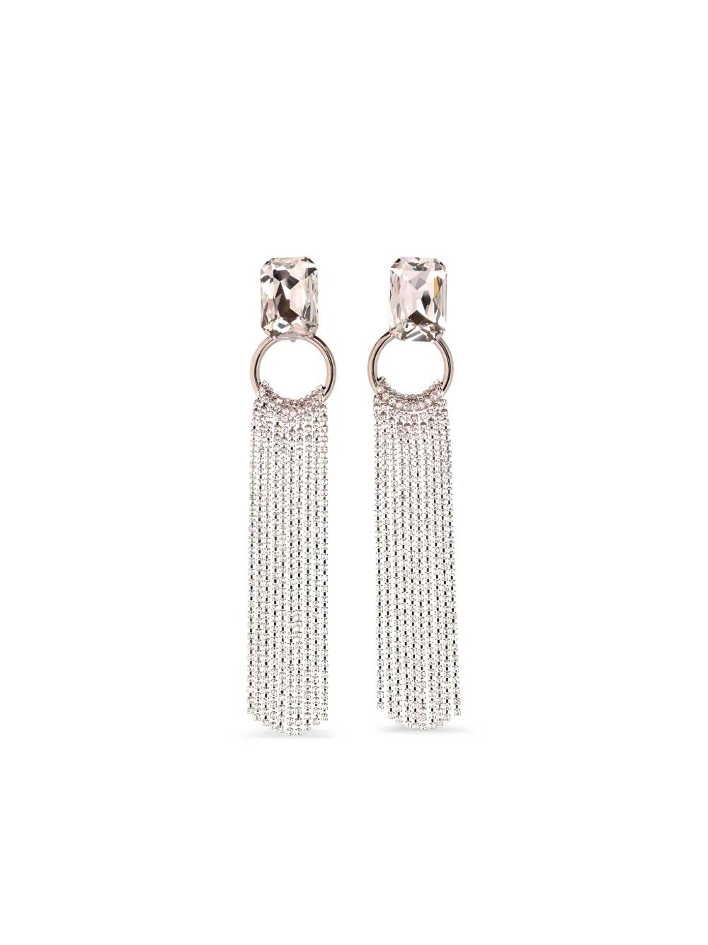 gold-tone crystal embellishment metal hoop chain fringe rectangular-cut stone These earrings come as a pair.