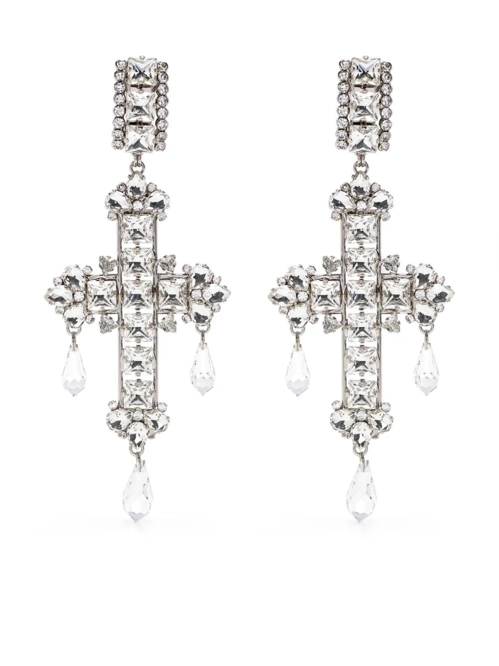 silver-tone polished finish crystal embellishment clip fastening drop design cross pendant These earrings come as a pair. This piece comes complete with a protective dust bag.