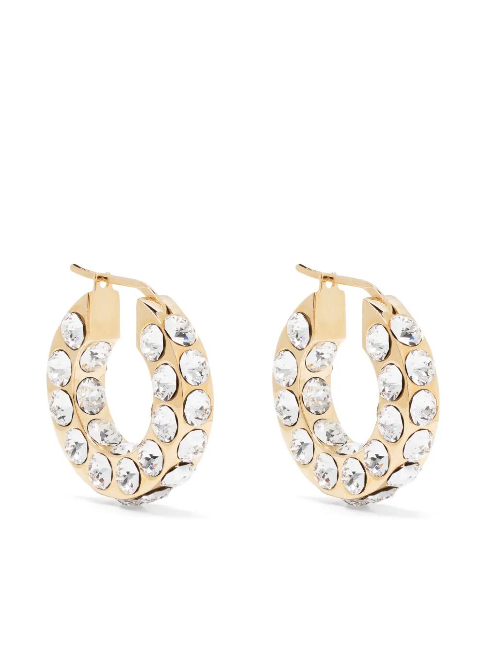 gold-tone crystal embellishment chunky hoop design polished finish clip-on hooks for pierced ears These earrings come as a pair.