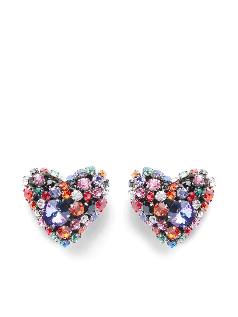 silver-tone/multicolor brass grass crystal embellishment omega-clip fastening 4.5cm length These earrings come as a pair.