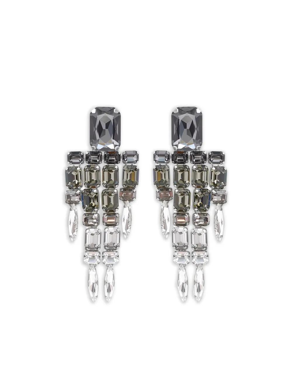 grey crystal embellishment drop design for pierced ears square detail metal construction These earrings come as a pair.