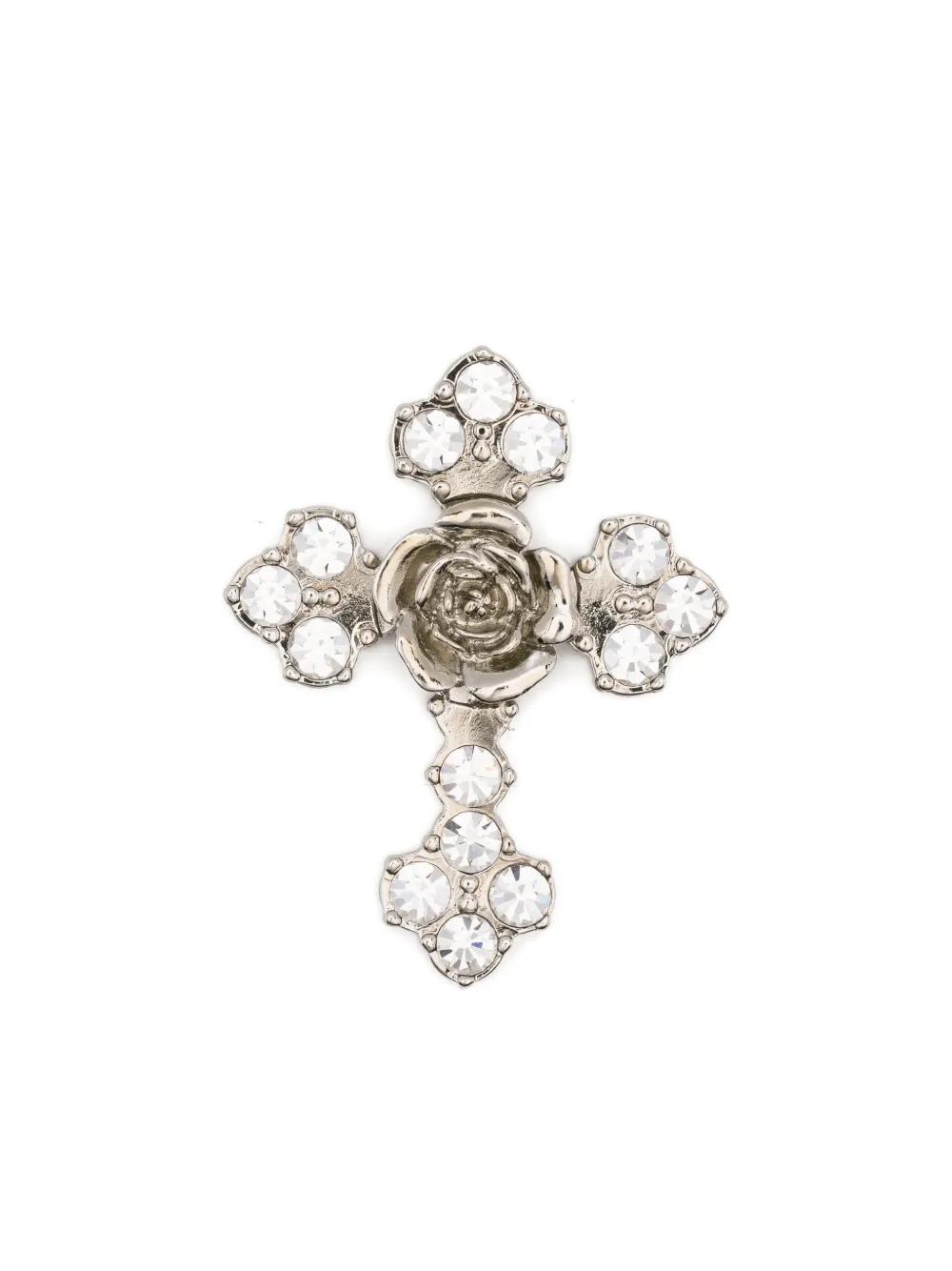 silver-tone crystal embellishment rose detail cross design stud fastening These earrings come as a pair.