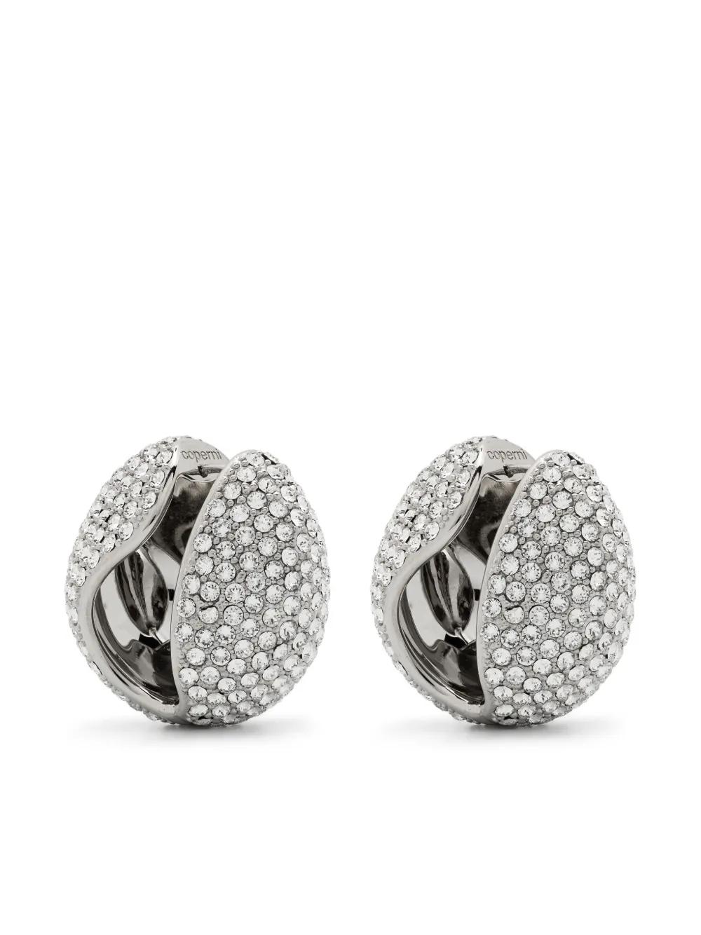 silver-tone polished finish crystal embellishment sculpted hoop design clicker hoop design for pierced ears These earrings come as a pair. This piece comes complete with a protective dust bag.