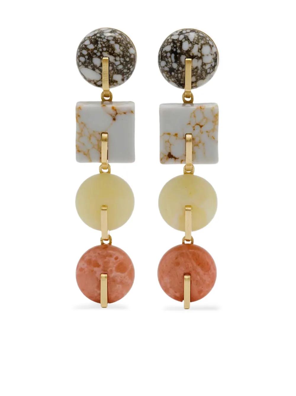 gold resin stone embellishments square stone round stone drop design clip-on fastening These earrings come as a pair.