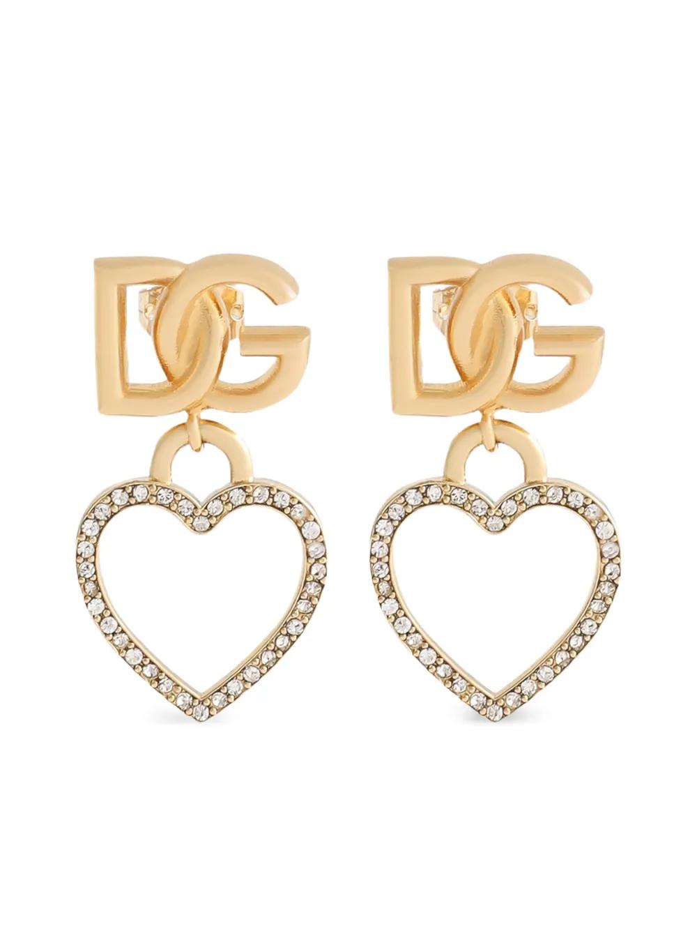 gold-tone crystal embellishments heart shape DG logo detail pavé setting These earrings come as a pair.