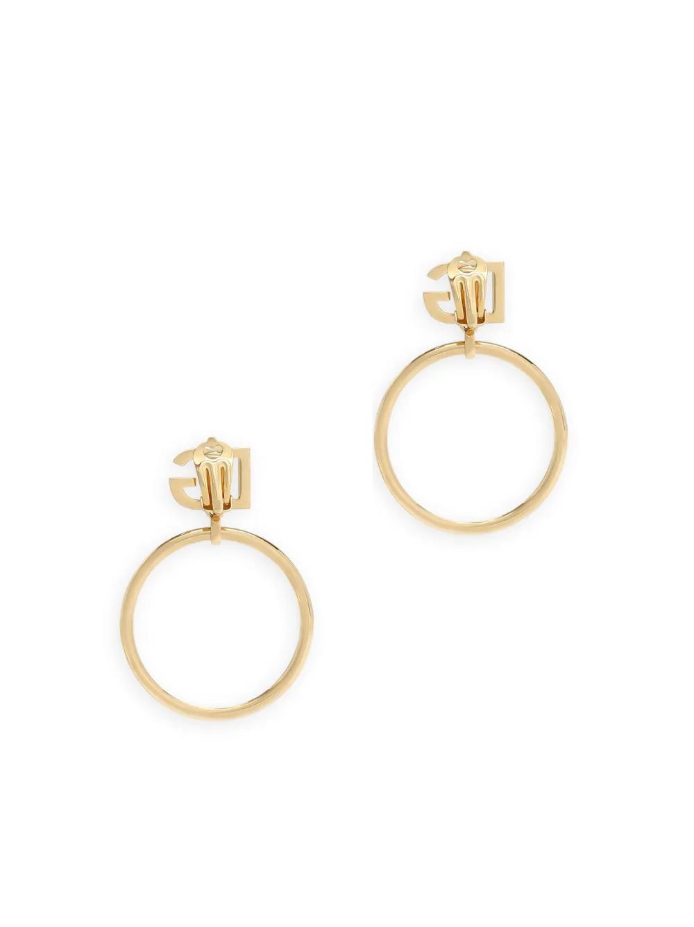 gold-tone polished finish logo charm small hoop design clip-on design These earrings come as a pair.