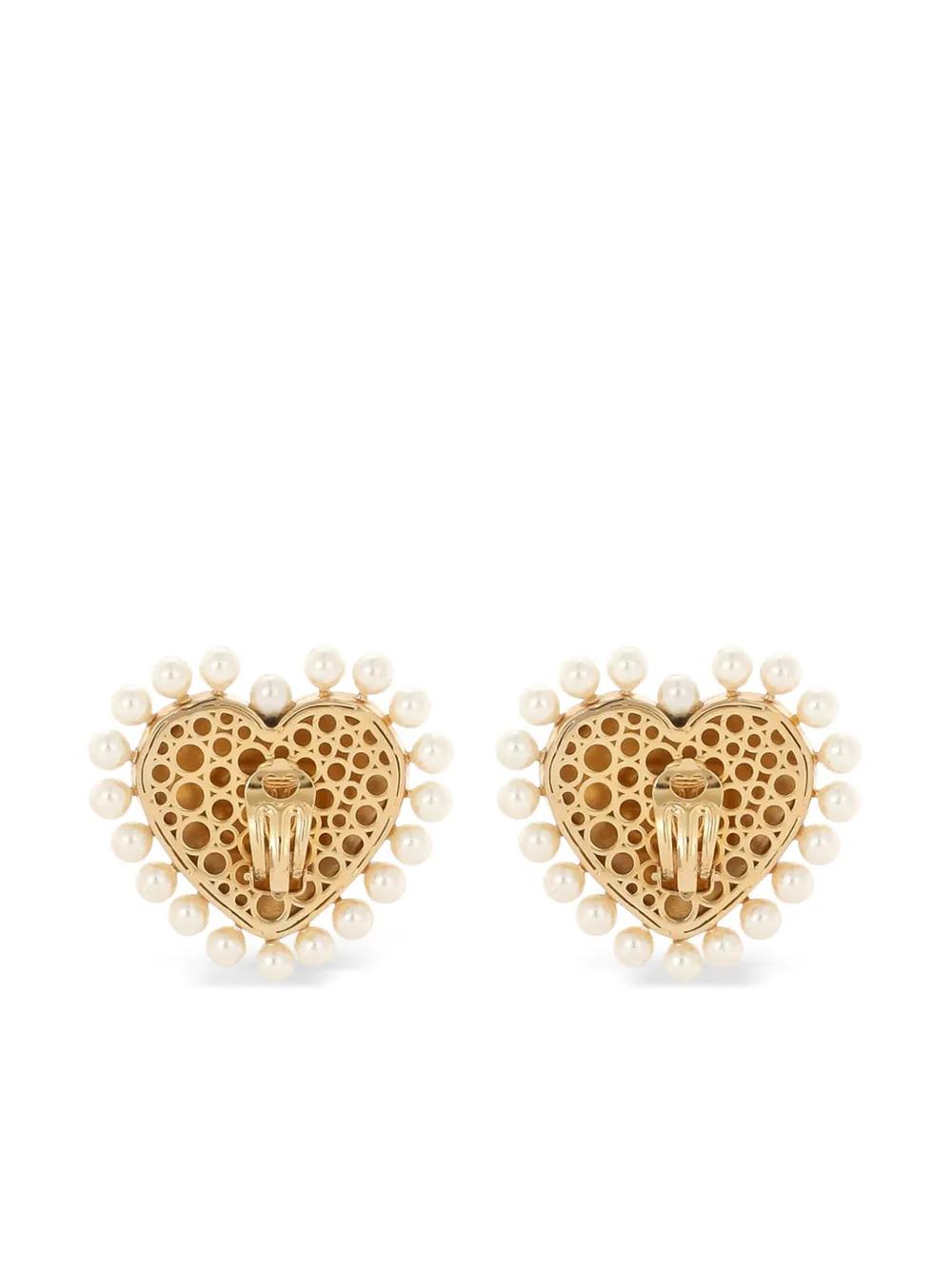 gold-tone brass hand-hammered effect embossed logo to the front faux-pearl embellishment heart motif clip-on hooks These earrings come as a pair.