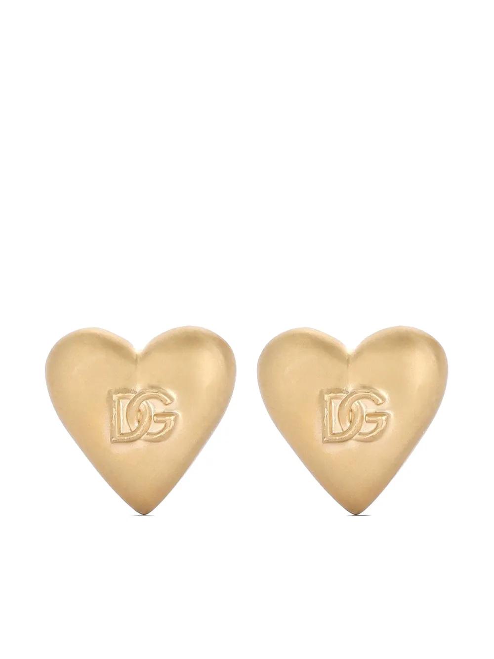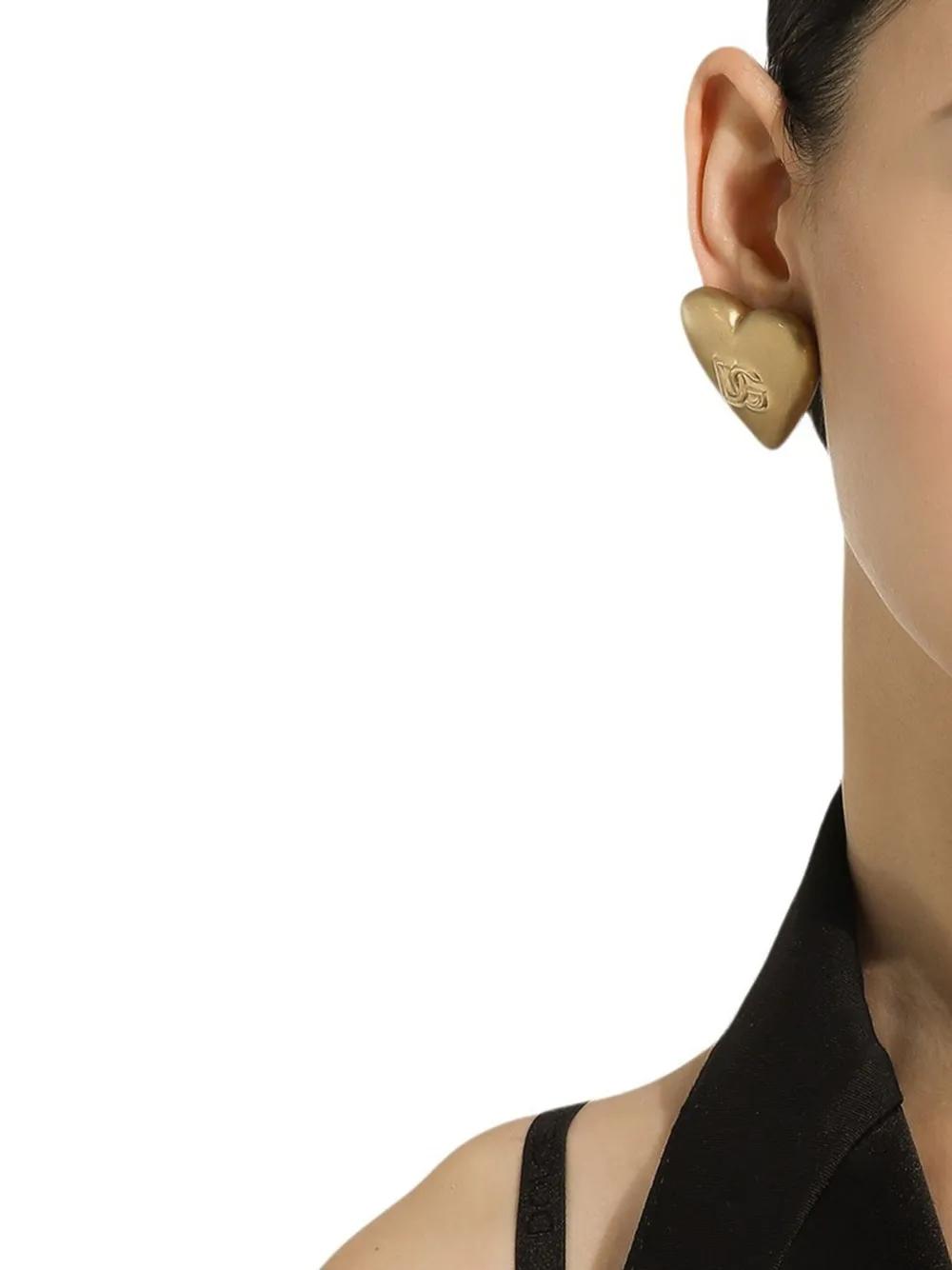 gold plated matte finish heart motif engraved logo clip-on design These earrings come as a pair.