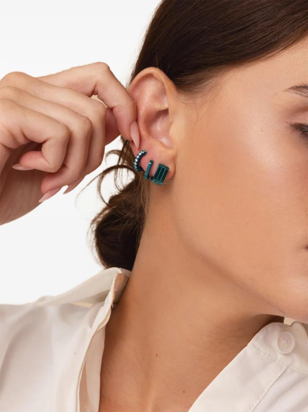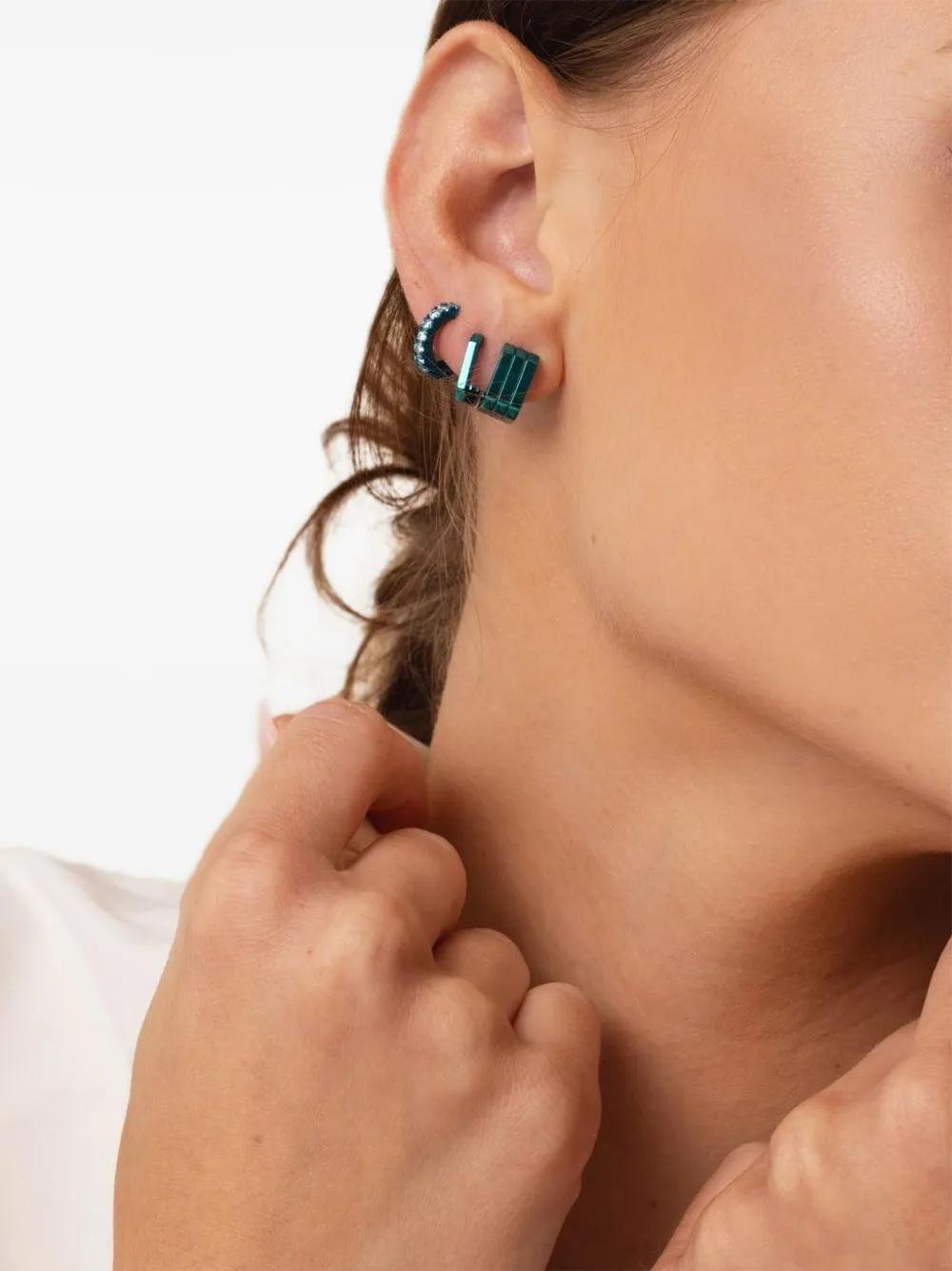 turquoise 18kt white gold enamel hinge-pin fastening small hoop design engraved logo for pierced ears This is a single earring. Normal everyday use and external agents may reduce the lustre of gemstones and gold surfaces. To maintain, use specific, non-abrasive products specially meant for cleaning jewellery.