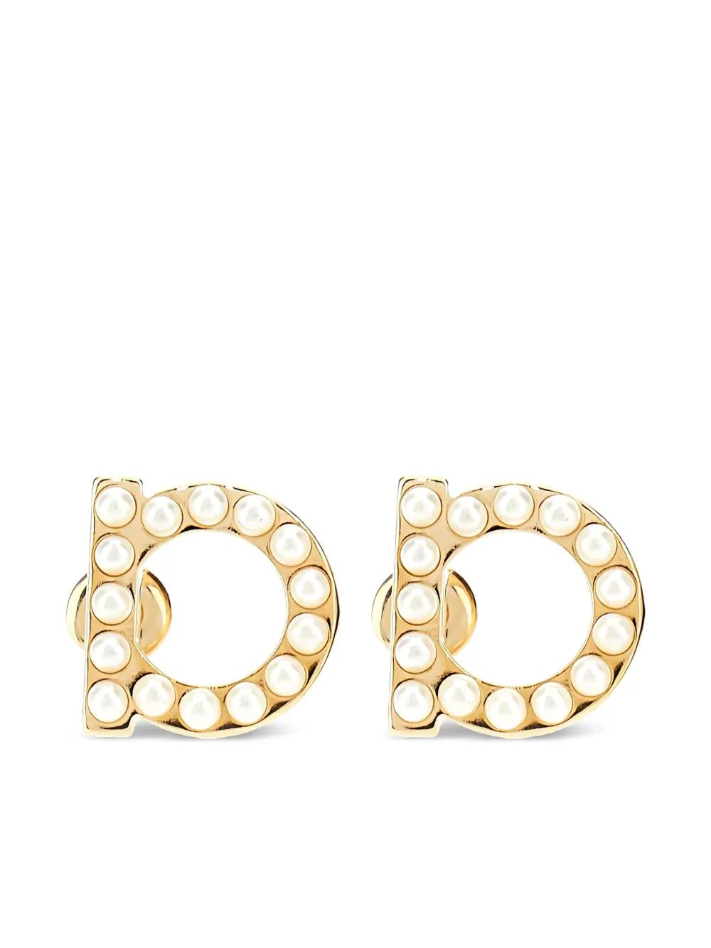 gold-tone polished finish stud design Gancini logo studs bead embellishment butterfly fastening for pierced ears These earrings come as a pair.