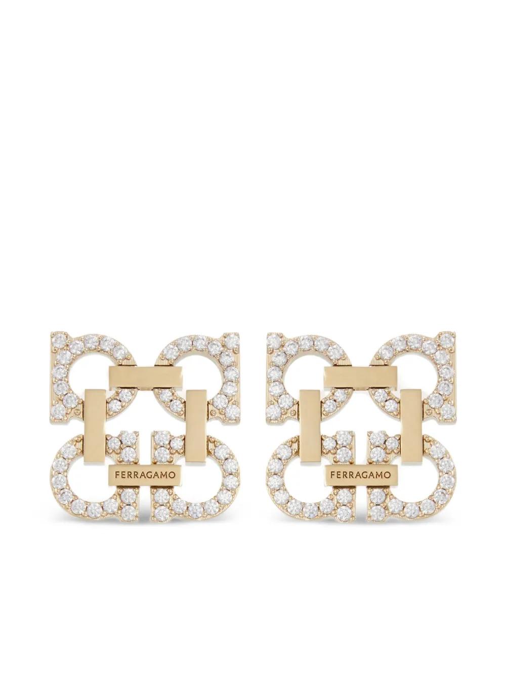 gold-tone Gancini plaque crystal embellishment These earrings come as a pair.