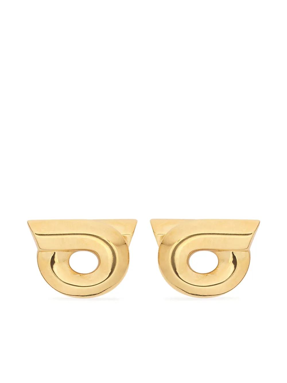 gold-tone gold plated Gancini plaque polished finish post-back fastening for pierced ears These earrings come as a pair.