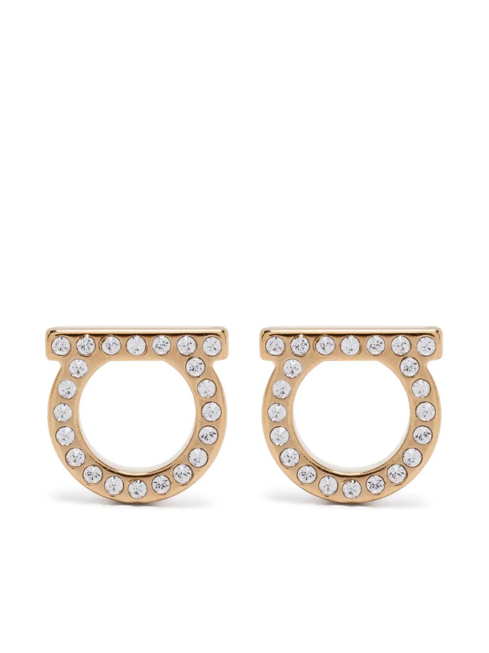 gold-tone brass/glass Gancini plaque crystal embellishment post back closure These earrings come as a pair.