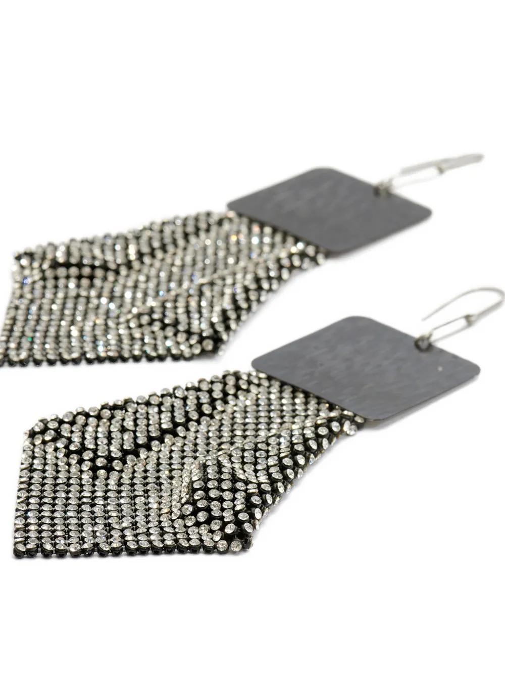 black square plaque draped design hook fastening for pierced ears These earrings come as a pair.