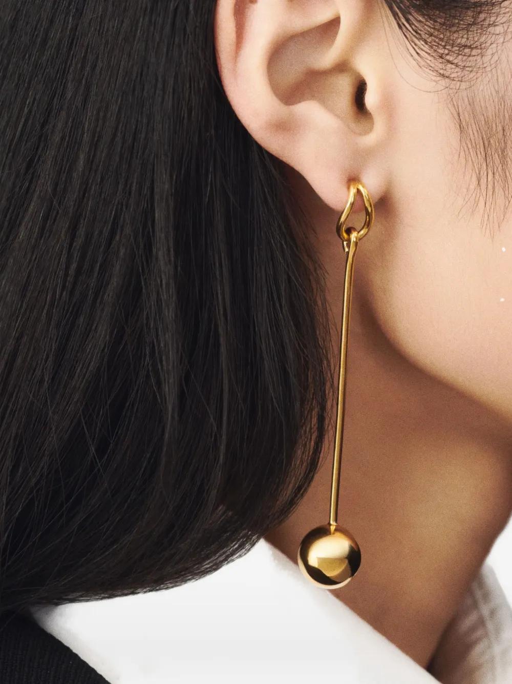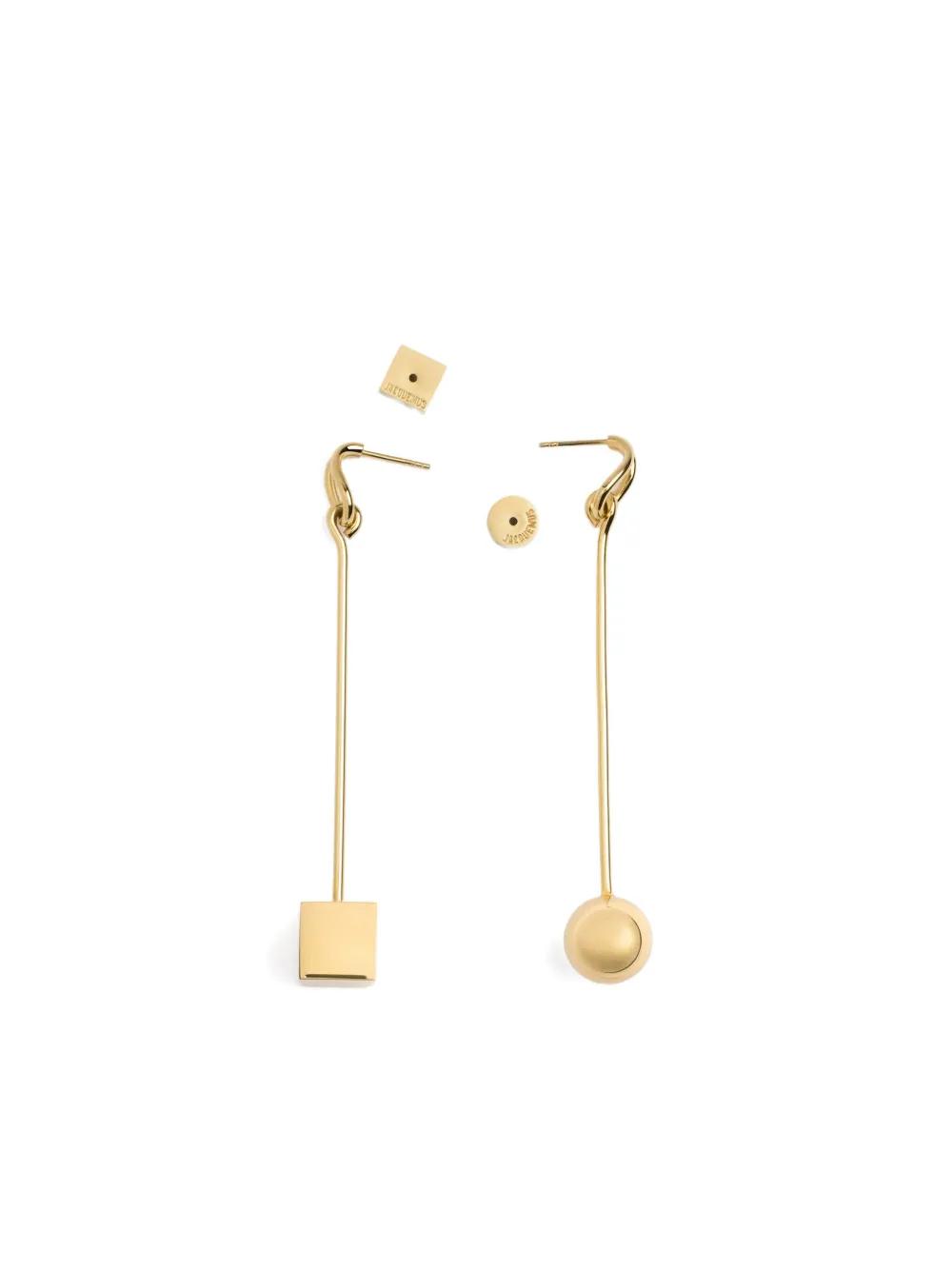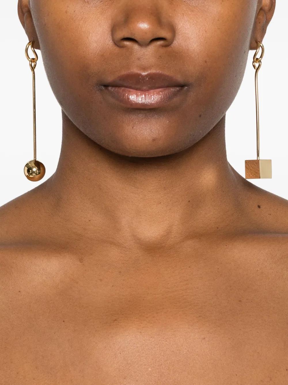 gold-tone sphere detail square detail post-back fastening drop style asymmetric design These earrings come as a pair.