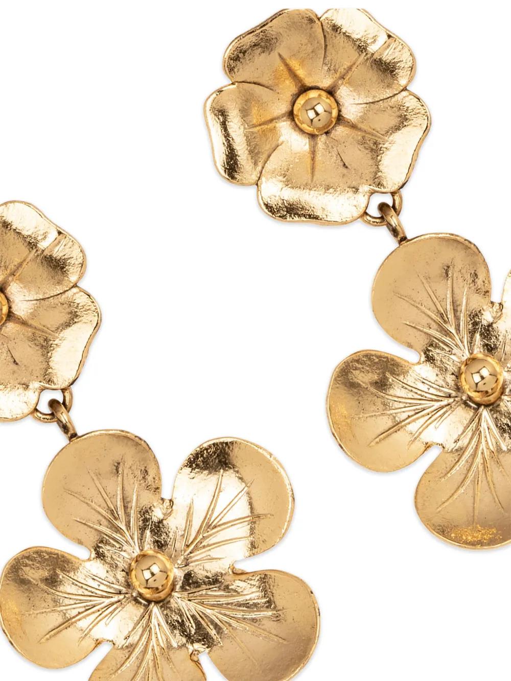 18kt gold plated polished finish floral motif drop design post-back fastening for pierced ears These earrings come as a pair.