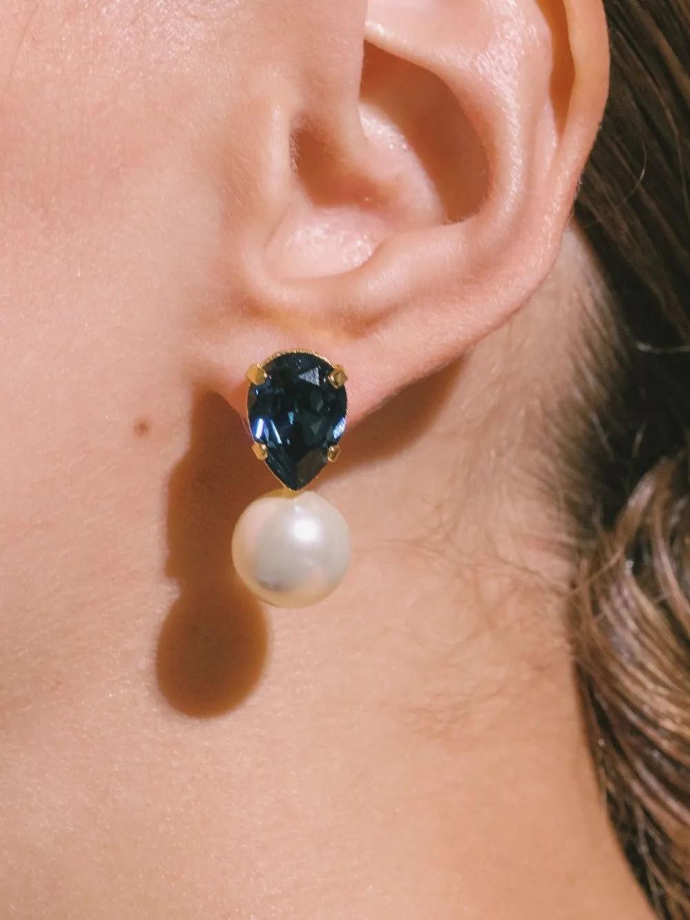 gold teardrop detail faux-pearl detail post-back fastening These earrings come as a pair. Normal everyday use and external agents may reduce the lustre of gemstones and gold surfaces. To maintain, use specific, non-abrasive products specially meant for cleaning jewellery.