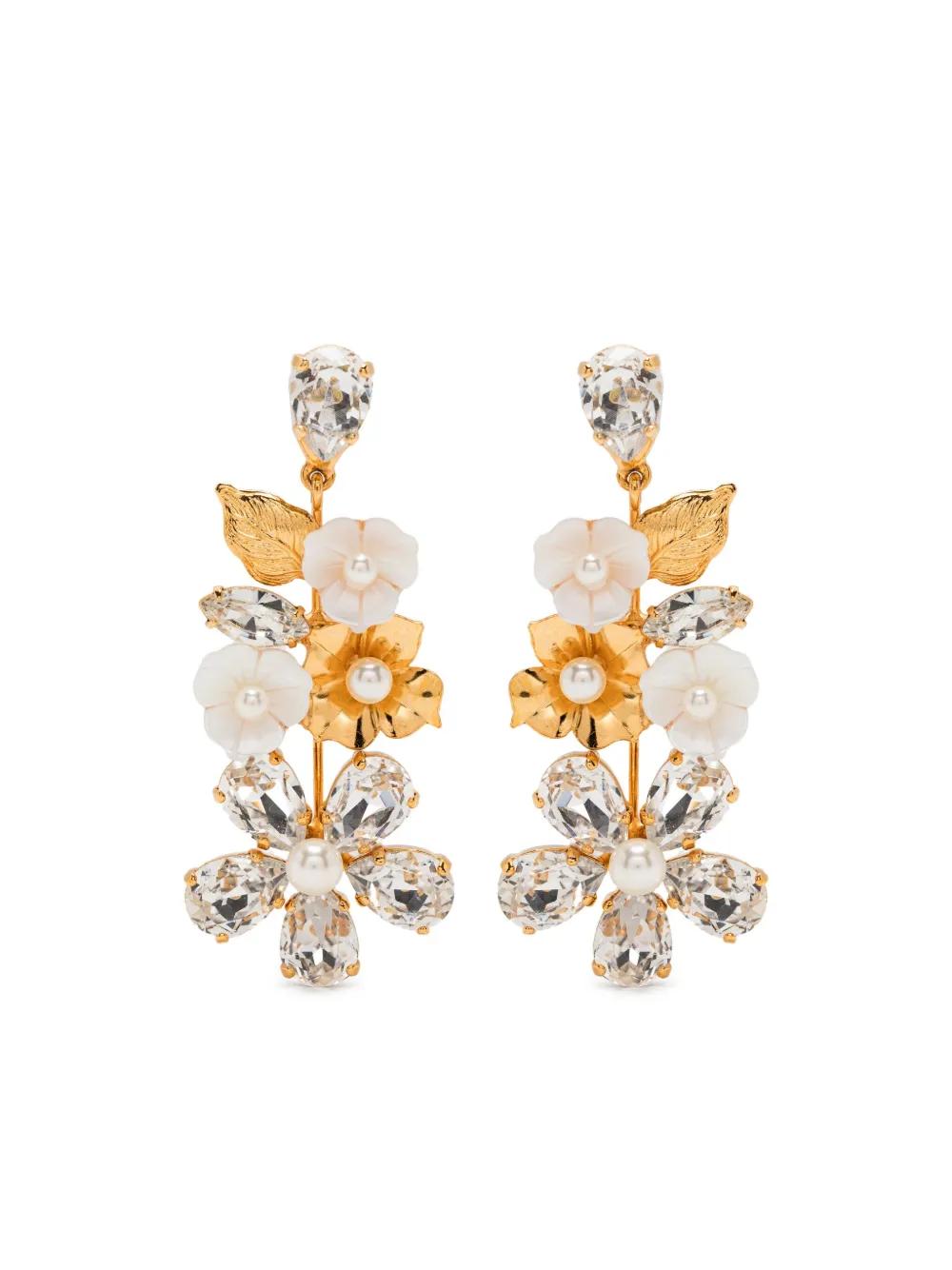 gold-tone post-back fastening floral design crystal embellishment pearl detail These earrings come as a pair.