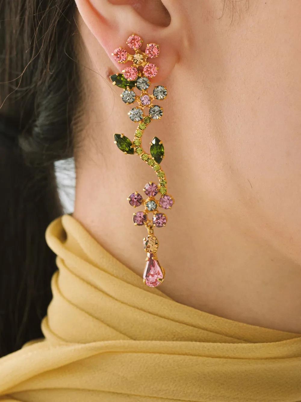multicolour floral motif faux-pearl embellishment for pierced ears This piece comes complete with a protective dust bag.