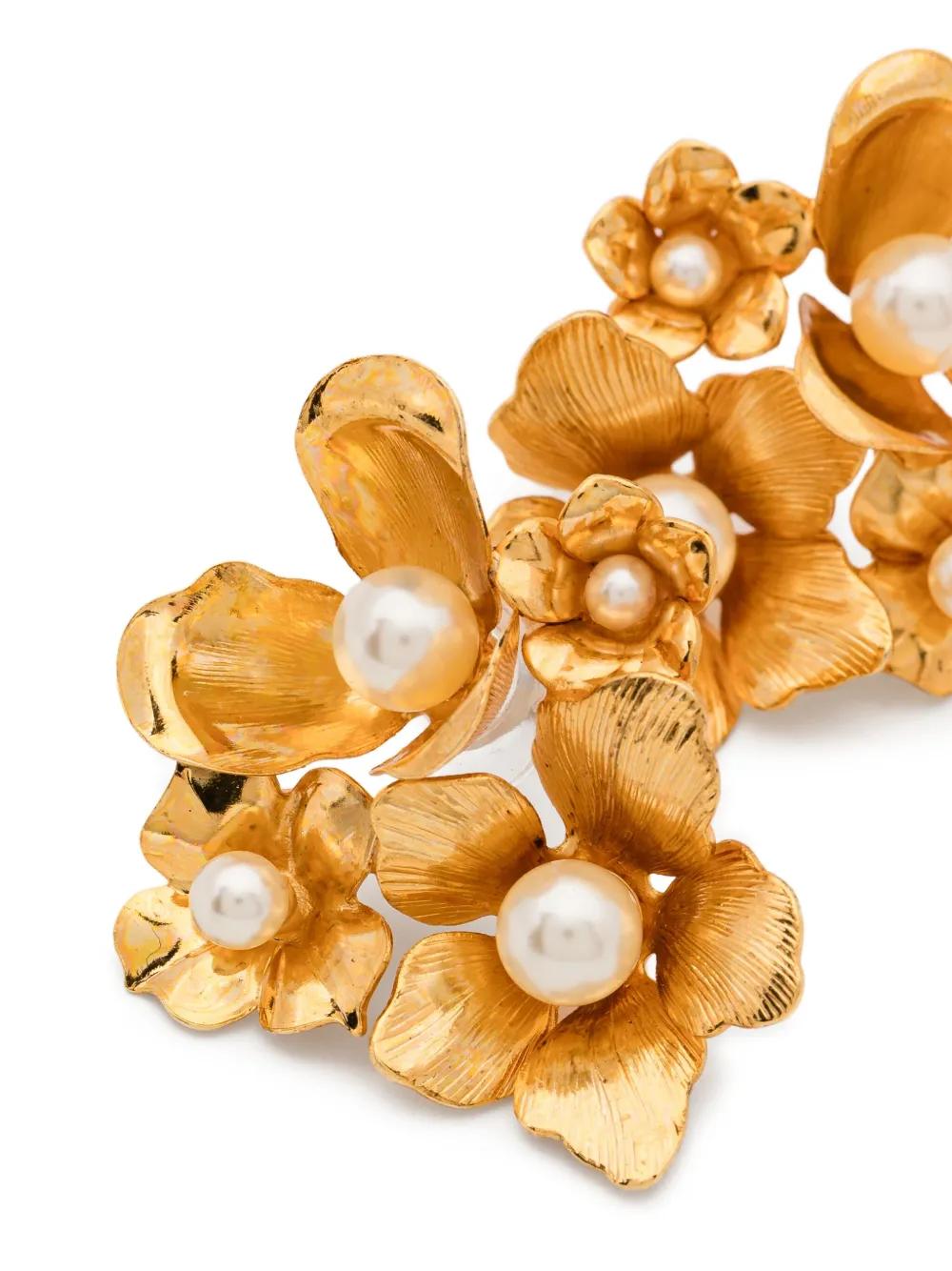 gold-tone post-back fastening flower detail pearl embellishment These earrings come as a pair.